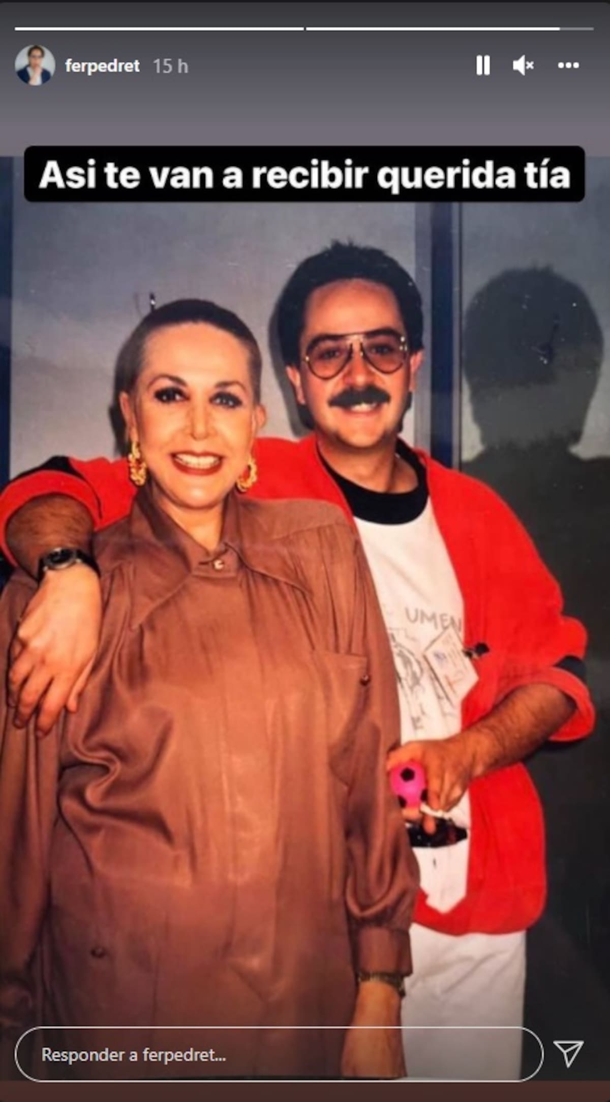 En otra de sus publicaciones, la nieta de la actriz compartió una foto en la que aparece María Rubio, de lo más feliz, al lado de su hijo Claudio, diciéndole a su tía que así la iban a recibir en el cielo su madre y hermano.