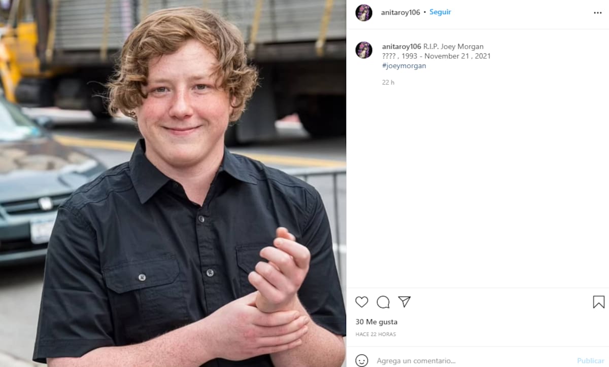 Joey Morgan falleció el domingo por la mañana. Esperamos que todos comprendan lo doloroso que es esto para sus seres queridos y puedan respetar los límites y permitan llorar en privado”, se lee en el comunicado de prensa.