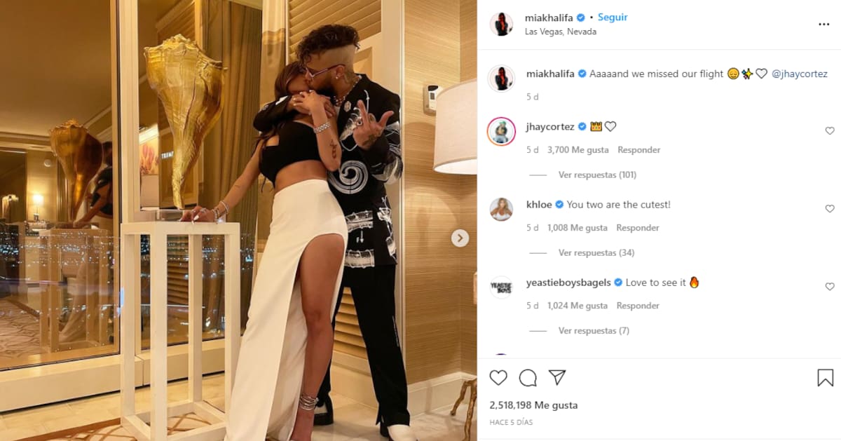 Por su parte, la creadora de contenido digital también quiso ser romántica con su nueva pareja y colgó varias imágenes y videos al lado de Jhay Cortez en donde aparecían besándose o dándose un tierno abrazo: "¡Ay! Perdimos nuestro vuelo", escribió al pie de la publicación.
