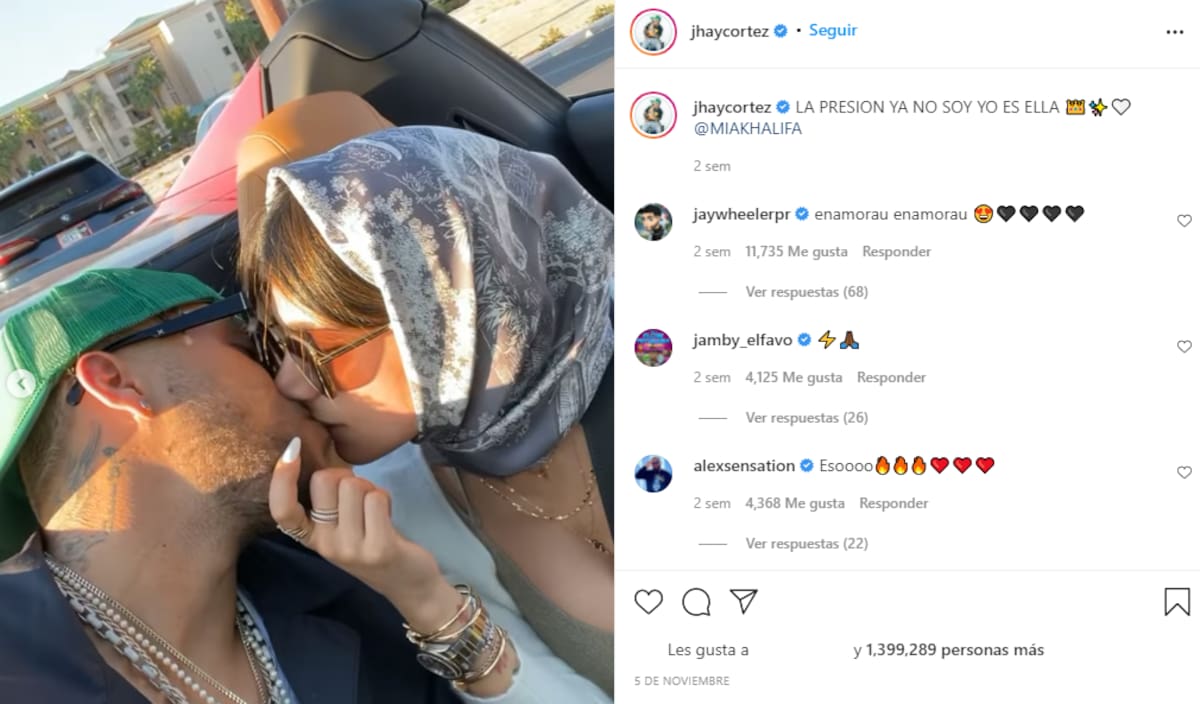 Respecto a su relación con el reguetonero, Mia Khalifa ha tratado de mantener los detalles privados, pero su relación se hizo pública cuando ambos protagonizaron un momento bastante intenso al besarse en el escenario durante un concierto del intérprete de "En mi cuarto".