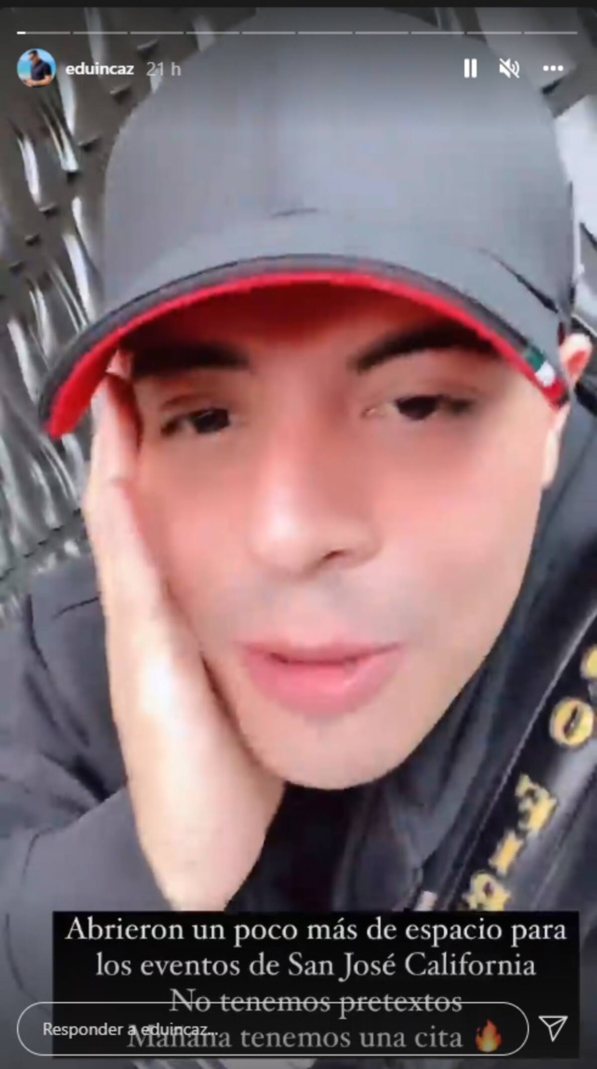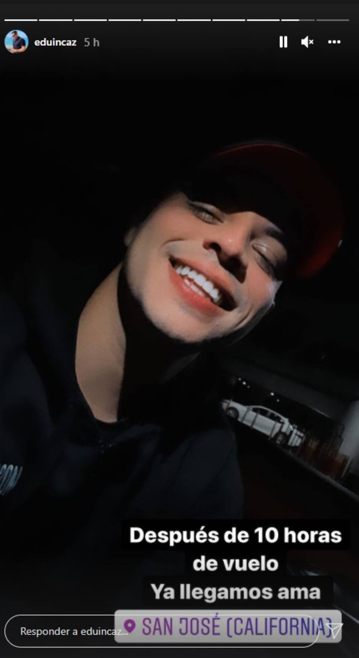 Hace apenas unas horas, Eduin compartió con sus seguidores que ya había aterrizado en San José, California, ya que habrían abierto nuevas fechas para presentarse en esa ciudad.