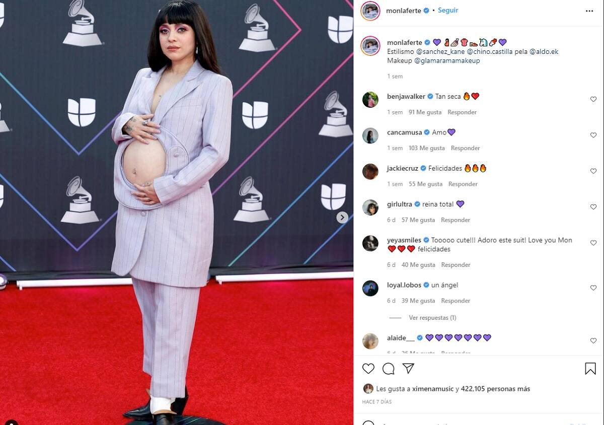 La propuesta de vestuario que Mon Laferte quería llevar era muy clara: Presumir su pancita de embarazo por primera vez, usar un traje de mariachi, y que hubiera vulvas.