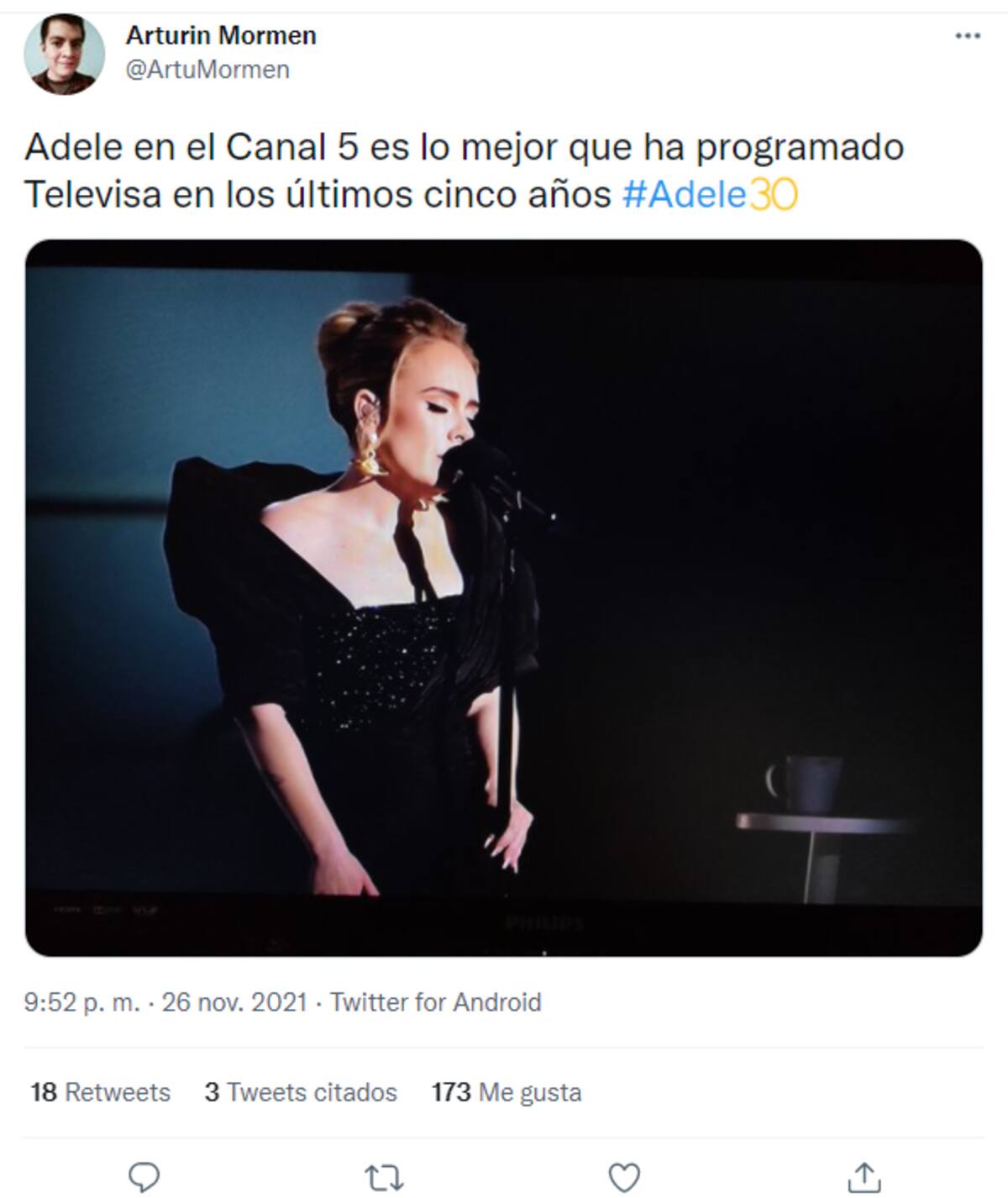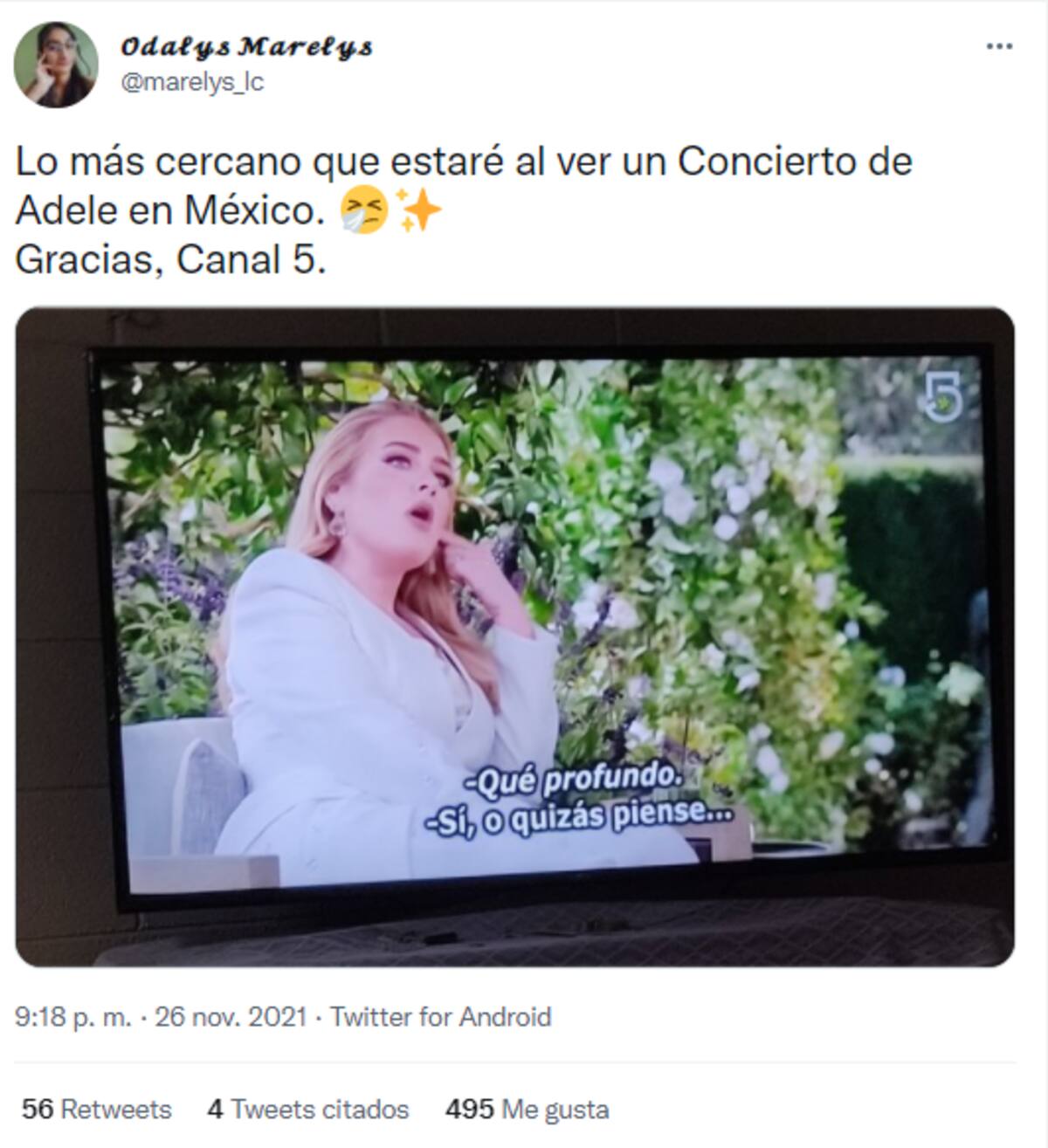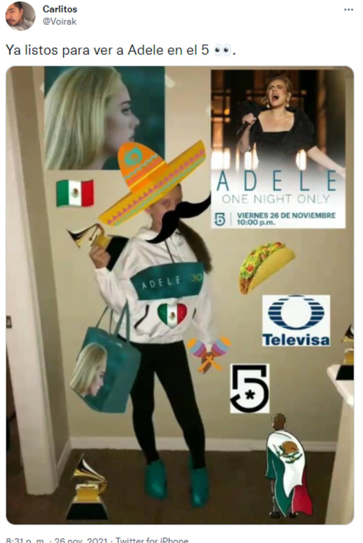 La noche del 26 de noviembre, el Canal 5 sorprendió a varios televidentes por mostrar la presentación de Adele, el cual ofreció el pasado 24 de octubre en el Observatorio Griffith de Los Ángeles. Éste fue grabado y emitido por primera vez por la cadena CBS y la plataforma Paramount+, por lo que varios se impactaron al ver que se incluyó en la programa de la televisión mexicana.