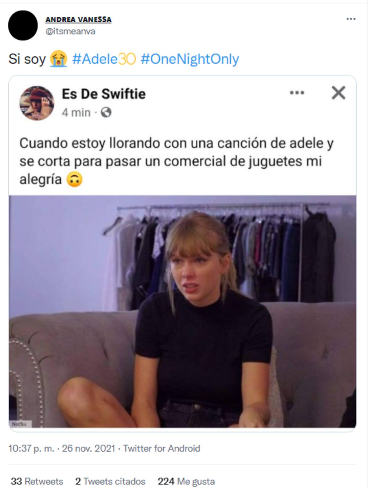 Como era de esperar, la plataforma de streaming no se hizo esperar y respondió rápidamente a la sugerencia de Adele. "Cualquier cosa para ti", respondió la compañía a través de la misma red social, lo que sorprendió a millones de usuarios.
