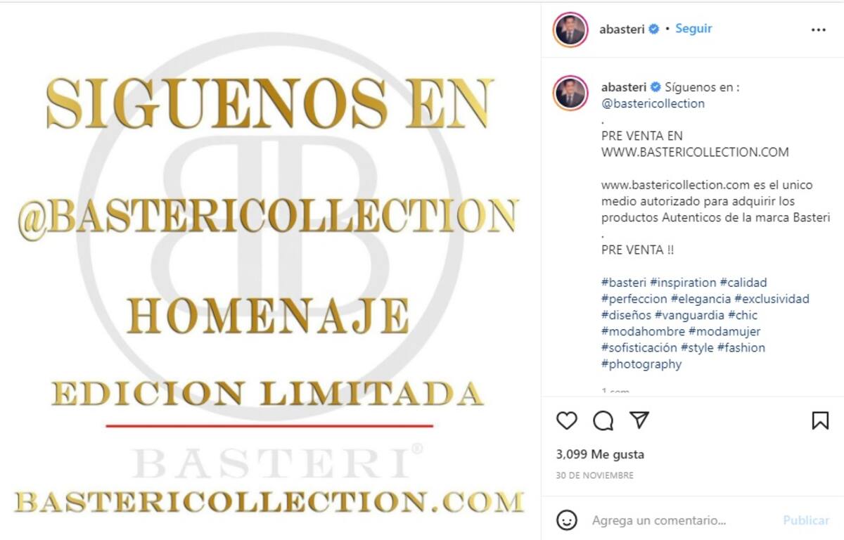 Basteri publicó en su cuenta de Instagram una serie de fotografías con el siguiente mensaje: