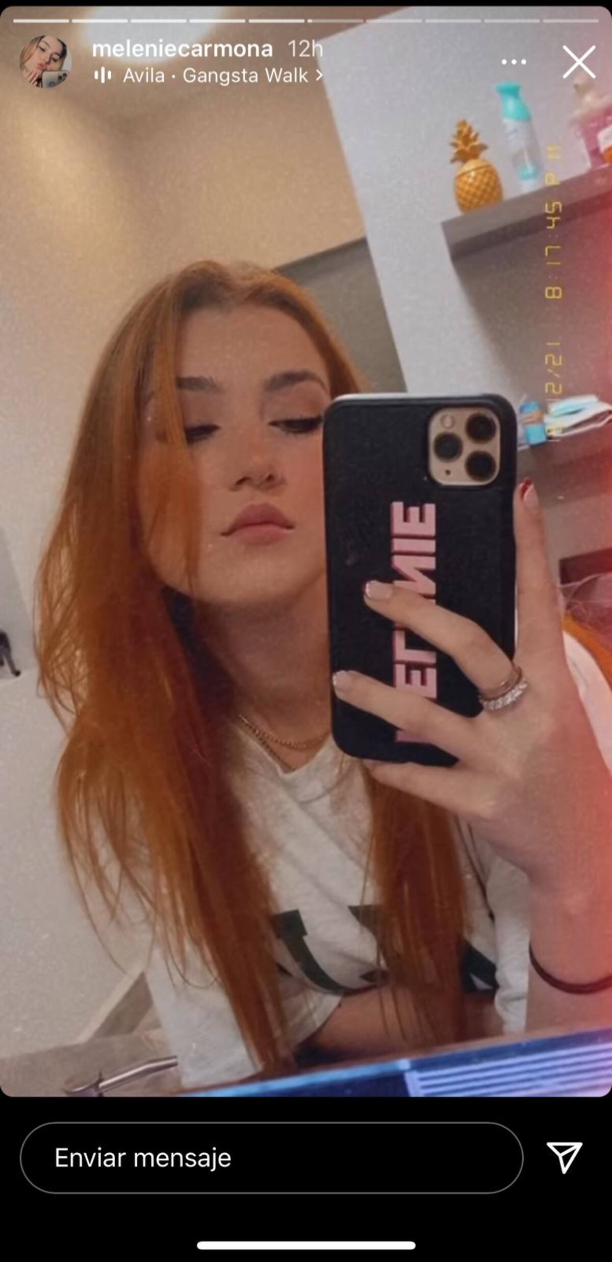 Ante este radical cambio fue su padre, Arturo Carmona quien reaccionó y en sus historias le envió un mensaje en manera de pregunta: ¿pelirroja?, porque seguramente habría quedado sorprendido al verla de esa forma.