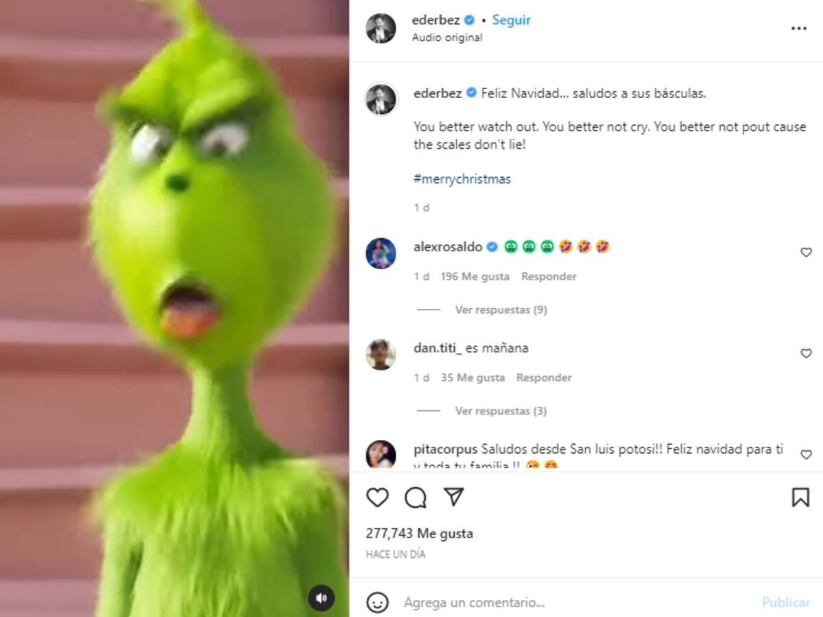 Y ahora, Derbez publicó un corto video con una escena de la película animada de "El Grinch", donde también prestó su icónica voz al personaje que, sin saberlo, es un amante de la Navidad.