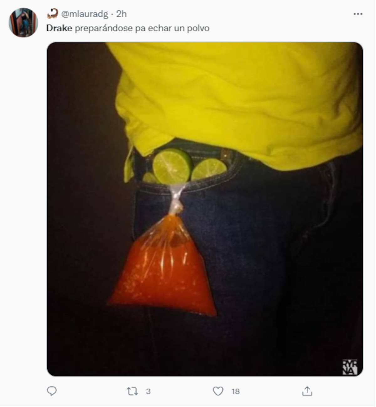 Luego de la revelación de la modelo, el nombre del rapero se volvió tendencia en Twitter por lo cómico que les parece la situación al imaginar que, luego de tener relaciones sexuales, Drake corre al baño para poner salsa picante dentro del preservativo y evitar que alguien utilice sus espermatozoides para un embarazo.