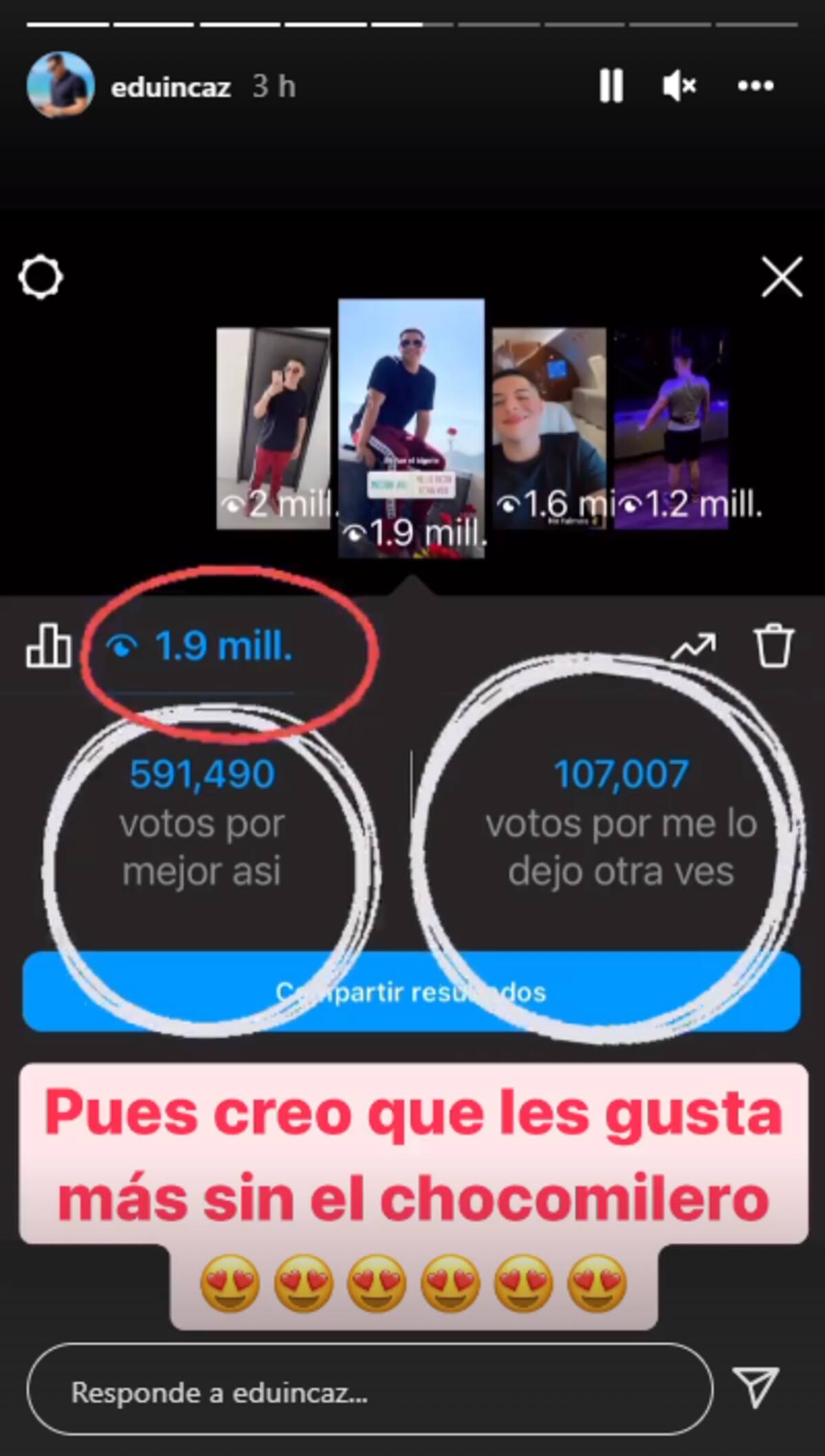 "Pues creo que les gusta más sin el chocomilero" , escribió en sus publicaciones junto a varios emojis de corazones.
