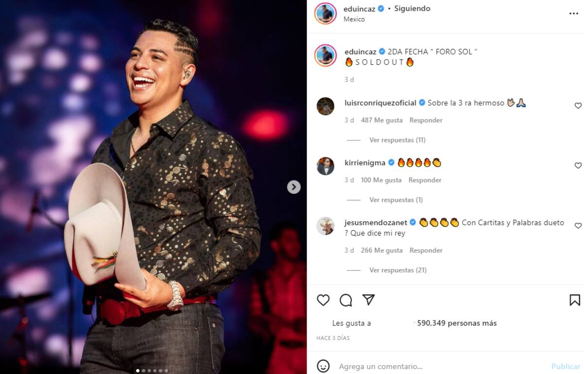 CIUDAD DE MÉXICO.- Hace unos días que Eduin Caz dejo en claro lo que sus fanáticos significan para él, luego de que compartiera con ellos que tenían pensado cambiar de apariencia y lucir algo nuevo como dejarse crecer el bigote , pero primero quería conocer la opinión de sus seguidores.