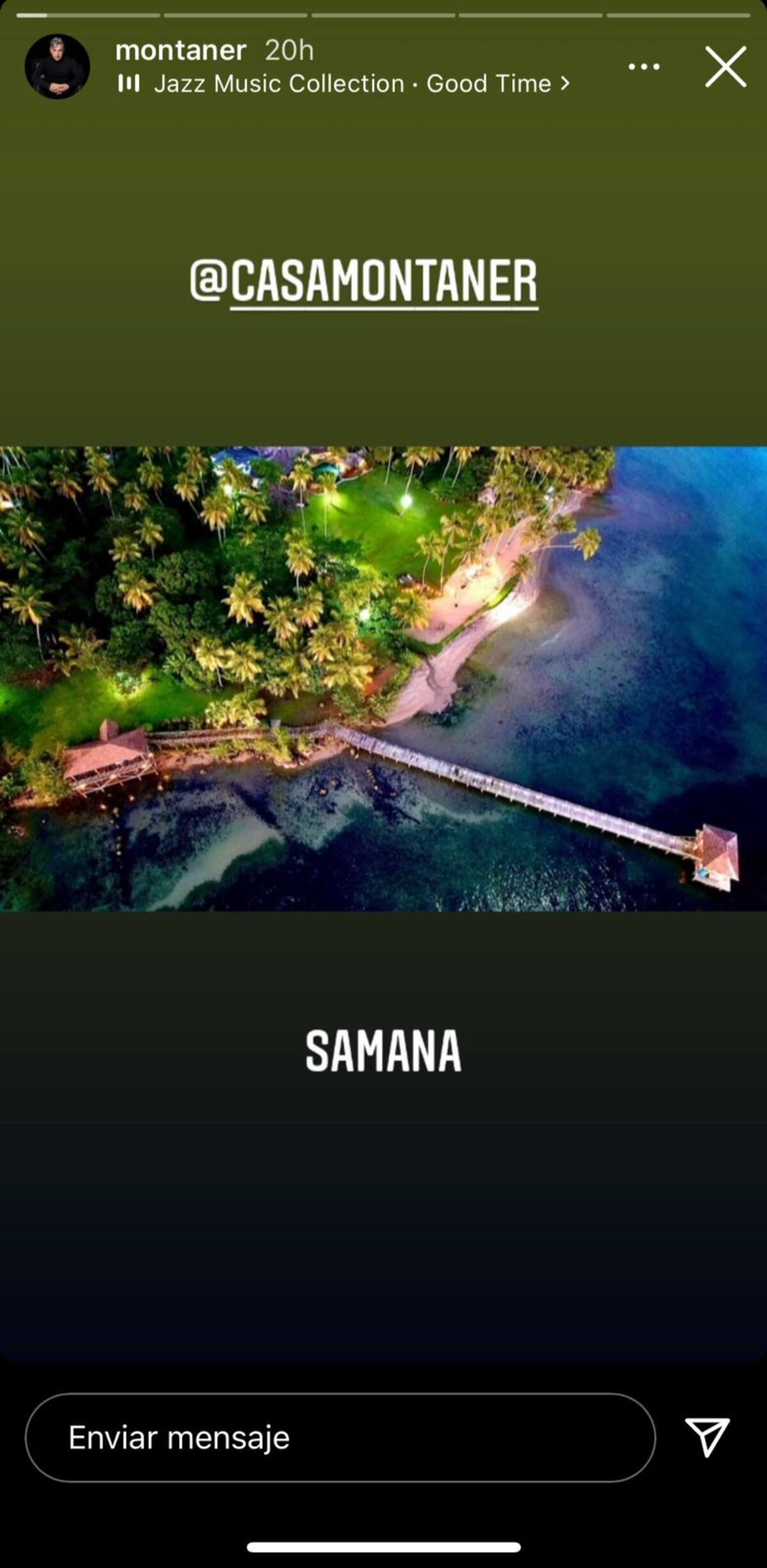 Hace unas horas Montaner compartió por medio de su cuenta de Instagram, una historia en la que se puede ver una fotografía tomada desde un dron, la vista desde afuera del hotel que aparentemente se encuentra en una isla.