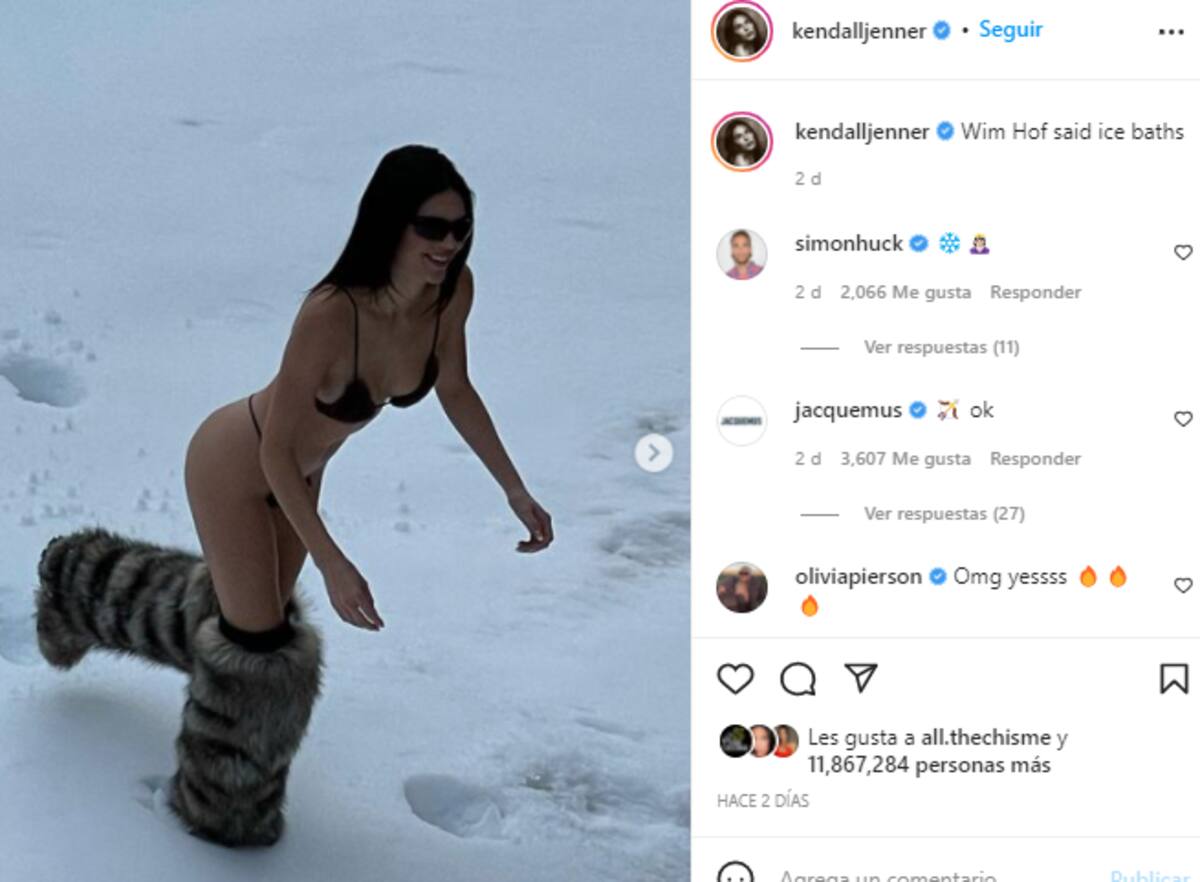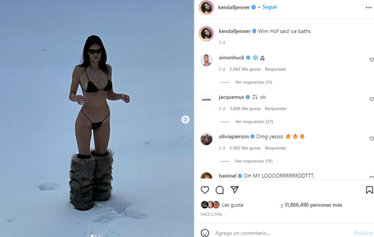 De momento, la publicación de la modelo ya cuenta con más de 11 millones de Me gusta y más de 50 mil comentarios por parte de los usuarios que se sorprendieron por la valentía de Kendall de posar en bikini en medio de la nieve, pues es algo que no se ve muy a menudo.