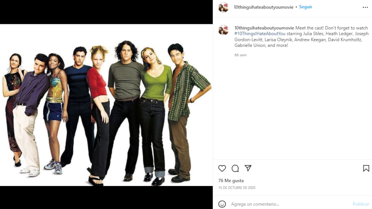 Y por último, una de las películas románticas que es considerada de culto entre distintas generaciones por la historia no convencional de amor, se trata de "10 cosas que odio de ti" que está disponible en Disney+.