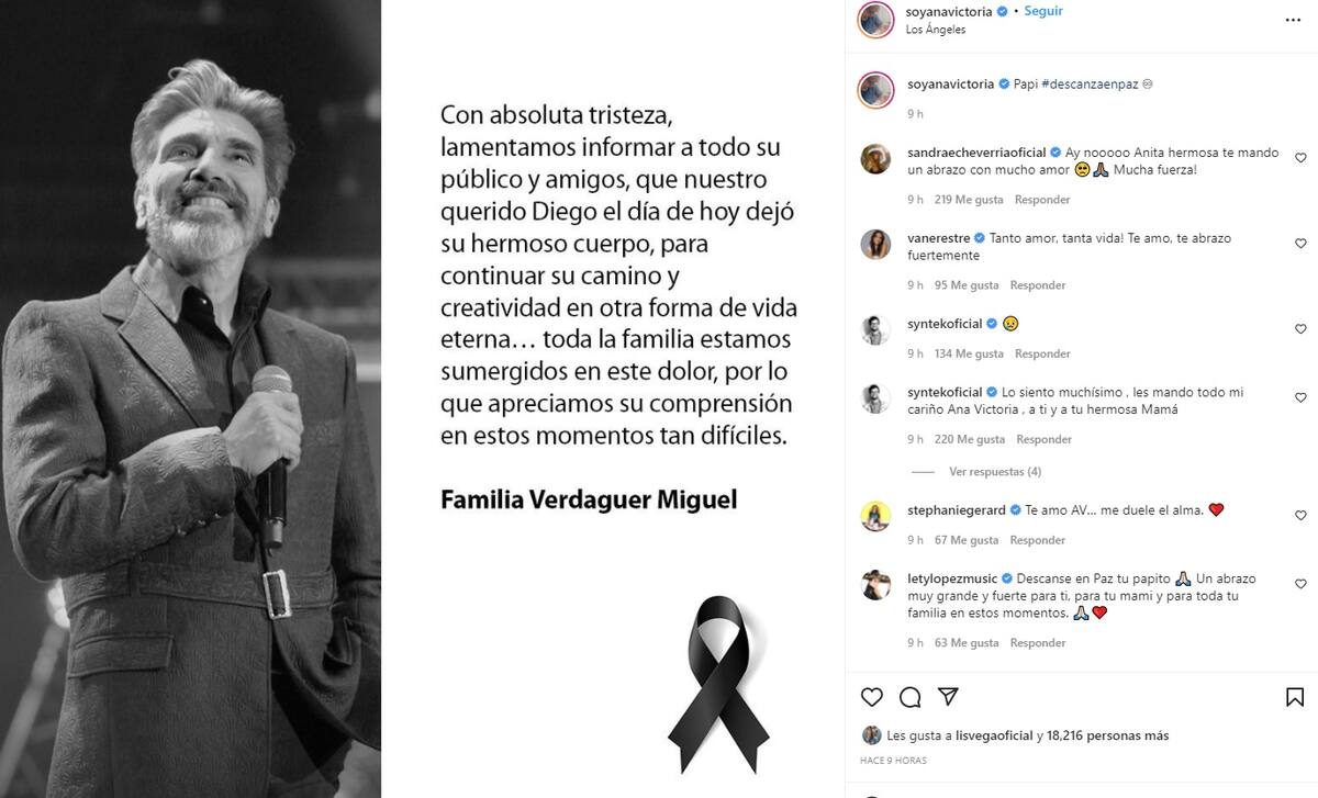A través de sus redes sociales, Ana Victoria se despidió de su padre Diego Verdaguer.