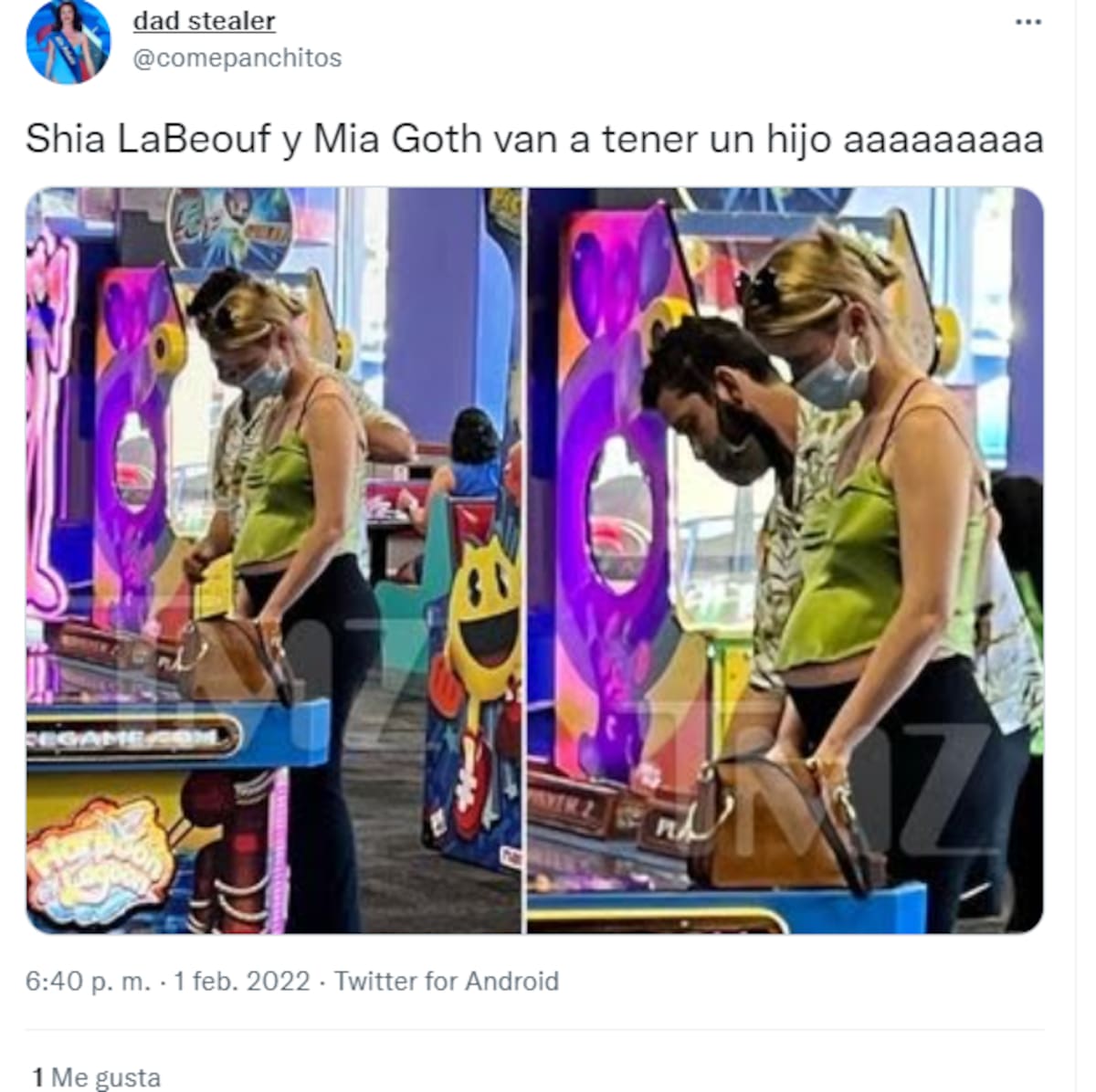 Por su parte, algunos usuarios de redes sociales expresaron que esto no era nada nuevo, ya que anteriormente se había captado a Mia Goth y Shia LaBeouf en Chuck E. Cheese y señalaron que el área abdominal de la actriz lucía un poco más grande de lo normal, pues sobresalía considerablemente debajo de su blusa verde de seda, lo que ocasionó que varios internautas indicaran que estaba en espera de su primer bebé con el actor.