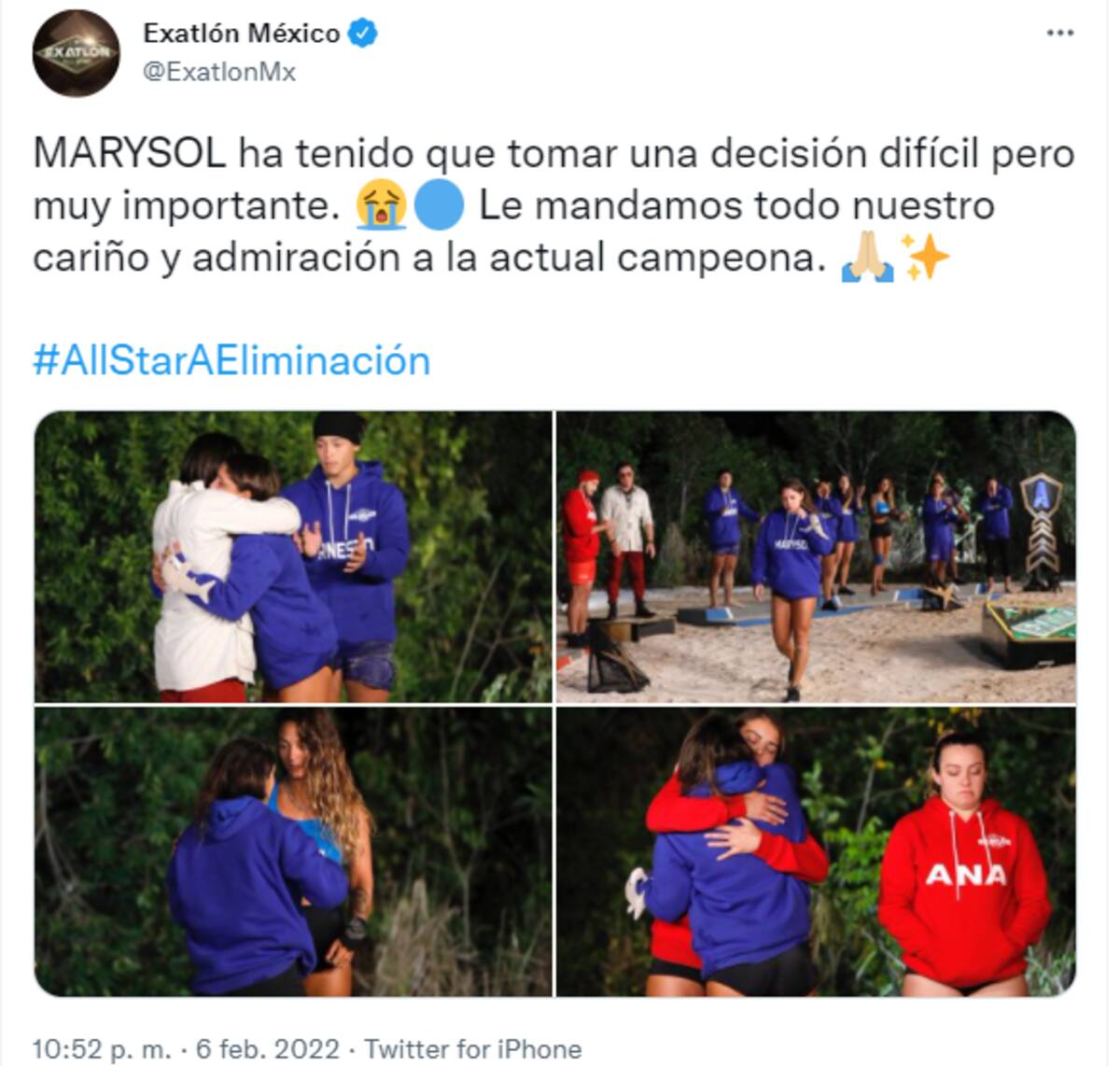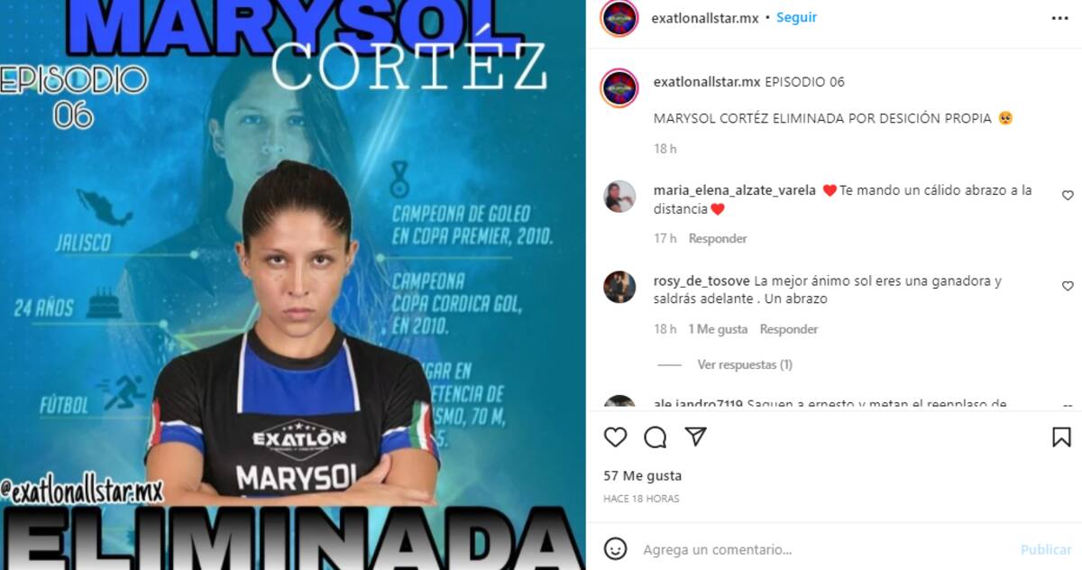 La producción de "Exatlón All Star" decidió aceptar la petición de Marysol y abandonó el reality. Pese a que fue por una razón válida y bastante personal, los usuarios de redes sociales se mostraron inconformes y dejaron saber su opinión a través de distintas publicaciones.