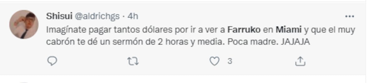 Ante esta nueva faceta del músico conocido como Farruko, aquellas personas que asistieron a su concierto que tuvo lugar en la Arena de Miami, expresaron su molestía y dijeron que habían pagado su entrada para una presentación, no para una misa, lo que también desató el descontento del puertorriqueño.