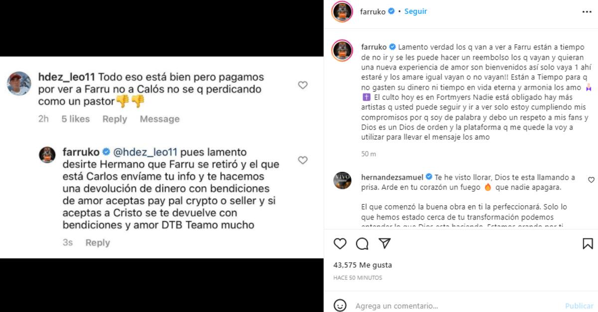 Carlos Efrén Reyes Rosado, nombre completo del exreguetonero, se percató de los ataques en las plataformas y compartió uno de los comentarios desde su cuenta de Instagram y resaltó que aquellos que ya no desearan ir a sus conciertos restantes tenían la oportunidad de pedir un reembolso, pues estaba decidido a no continuar con su música y proseguir por 'el camino de Dios'.
