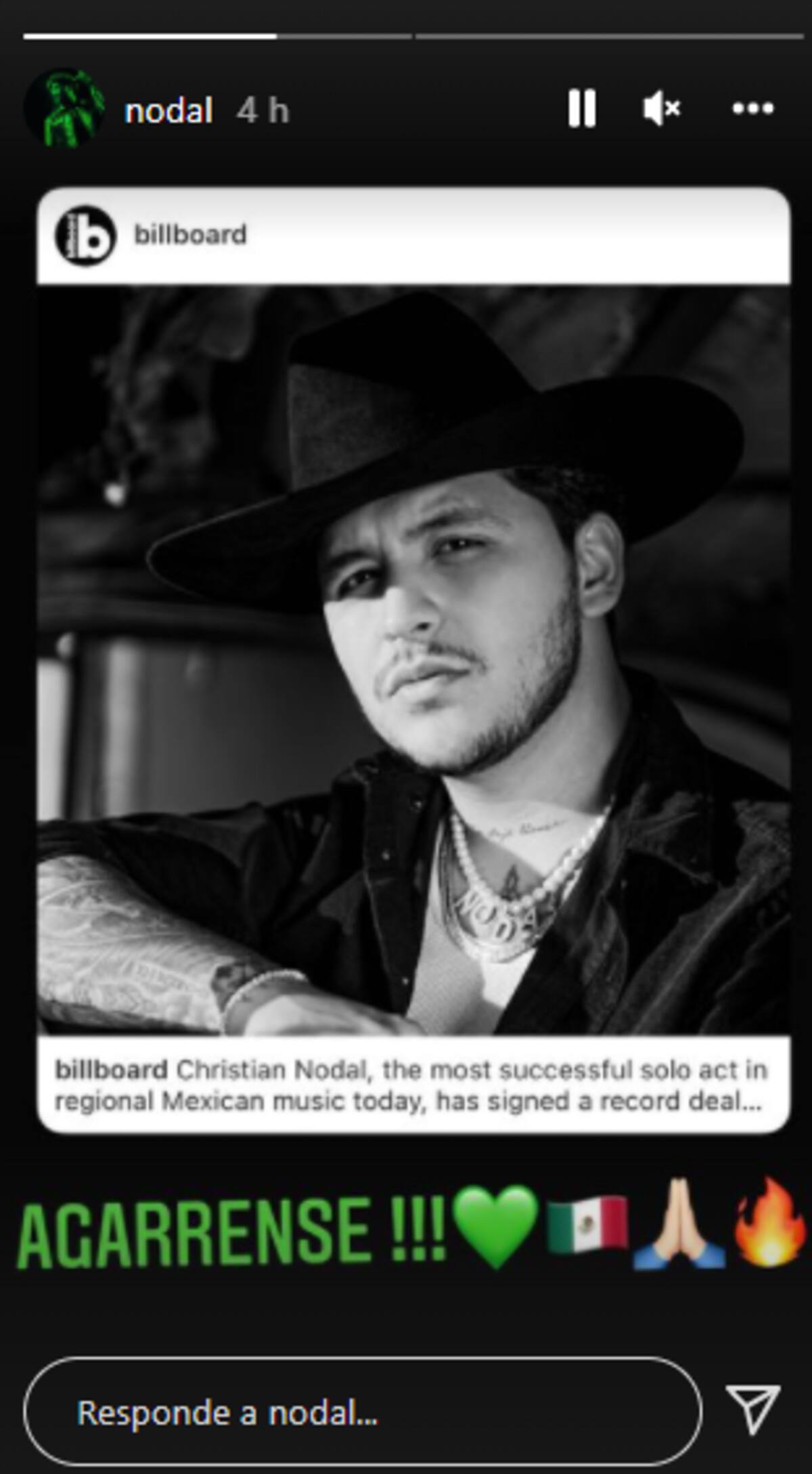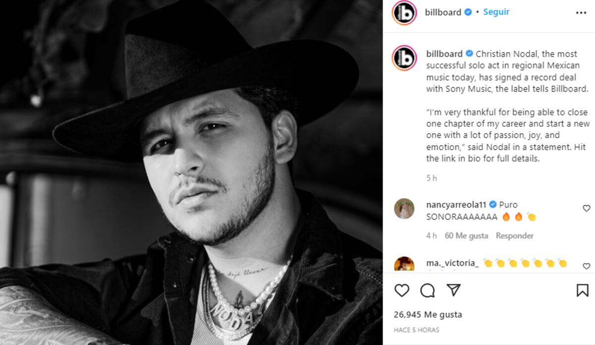 CIUDAD DE MÉXICO.- Hace un par de horas que Christian Nodal anunció desde sus historias de Instagram que firmó un contrato con Sony Music, incluso el sitio de Billboard dio las buenas noticias desde sus redes sociales, provocando una ola de comentarios por parte de los fanáticos del compositor que lo felicitaron por este logro y por salir adelante luego de su ruptura con Belinda.