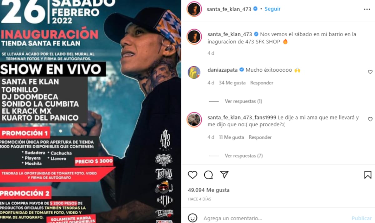 Es por ello que Santa Fe Klan decidió abrir su propio negocio con mercancía oficial en su lugar natal; tienda que fue inaugurada el pasado sábado en su barrio, por lo que hizo una gran fiesta para invitar a sus seguidores al local.