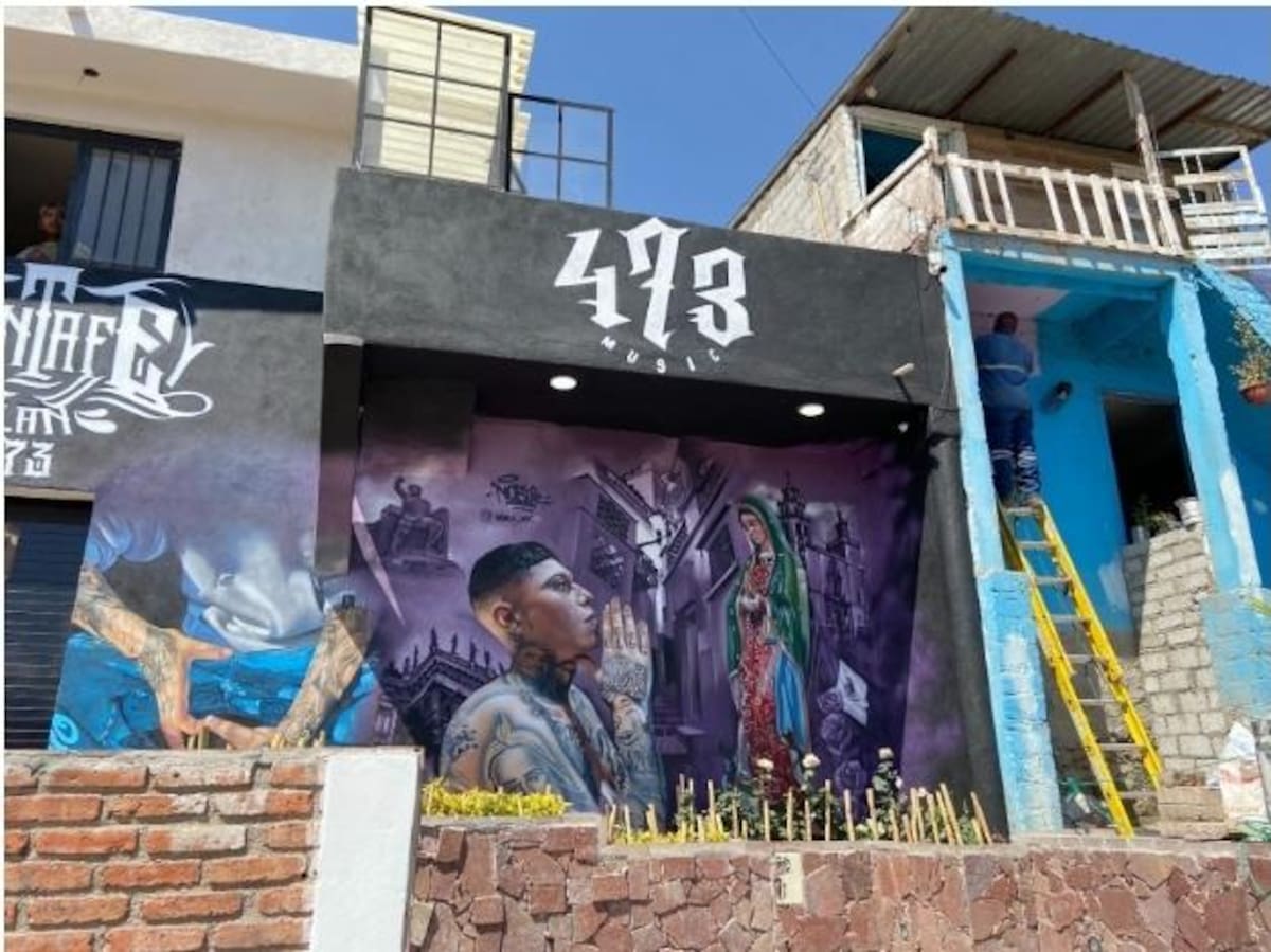 Cientos de personas hicieron filas por horas solo para ser los primeros compradores en la tienda oficial de Ángel Quezada ubicada en la calle La Bufa del barrio Santa Fe, donde se encuentra el reconocible mural del rapero.