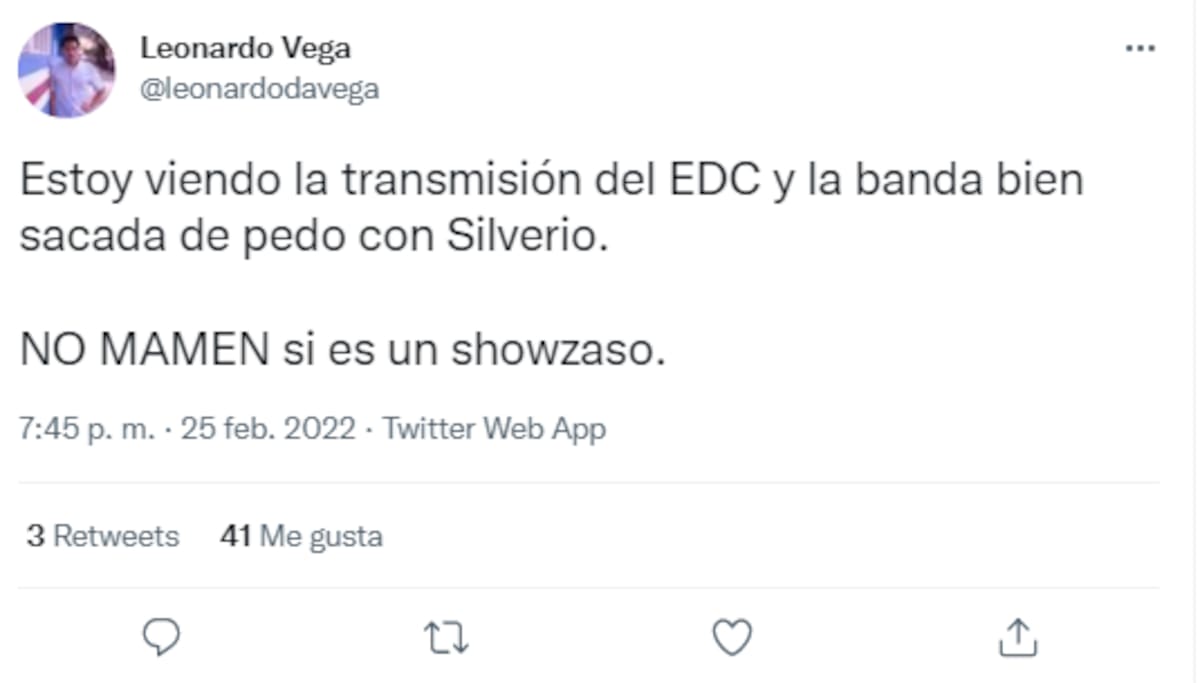"No estaban listos para Silvero", "No supieron valorarlo", "Fue la mejor presentación del EDC, nos levantó el ánimo a quienes lo escuchamos", "Esos que fueron al EDC se asustaron con el show de Silverio", "Silverio fue lo único chidito, a mí parecer", fueron algunos comentarios.