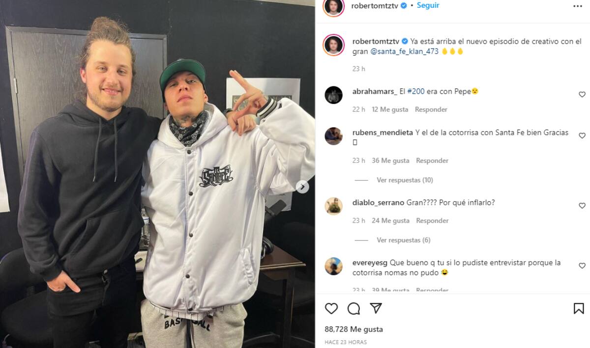 Durante la más reciente emisión del podcast Creativo de Roberto Martínez, el músico Santa Fe Klan habló sobre su trayectoría artística, sus inicios en el rap en su barrio en Guanajuato, el crecimiento de la fama y qué es lo que quiere obtener en su futuro.