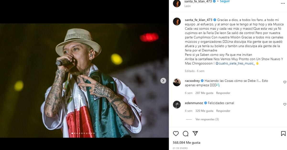 CIUDAD DE MÉXICO.- Ángel Jair Quezada, mejor conocido en el ámbito artístico como Santa Fe Klan, logró ganarse el cariño del público mexicano por su increíble talento en la música y también por su carisma, característica que sus fanáticos siempre sacan a la luz.