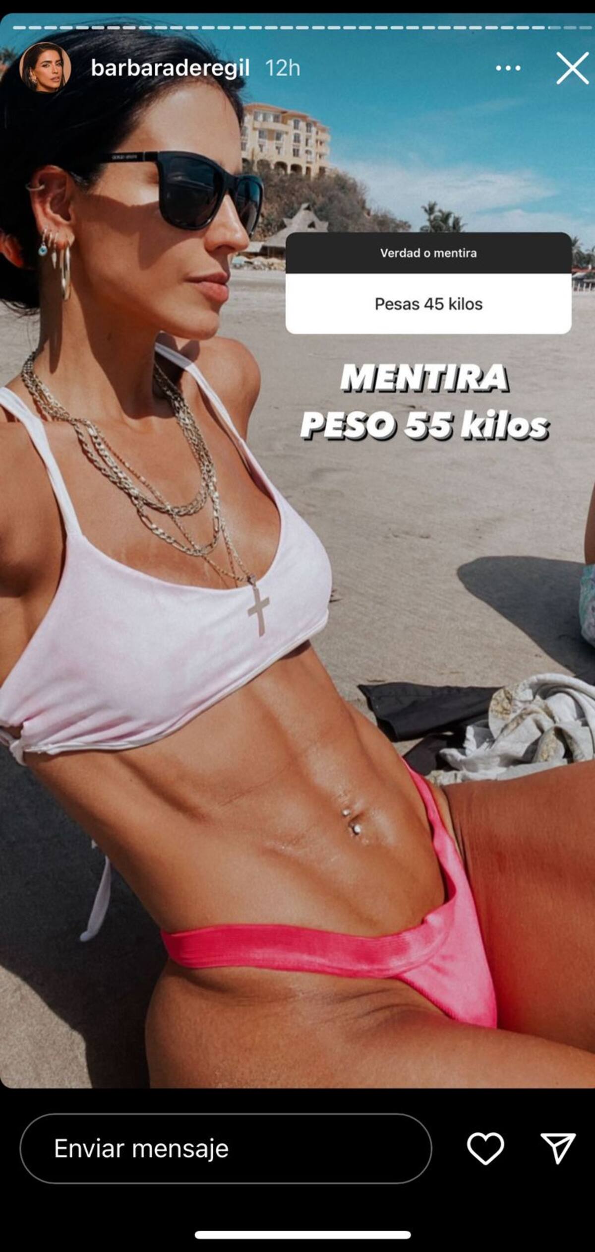 Por supuesto uno de sus seguidores no dejó de hacer la “pregunta del millón” cuánto es lo que realmente pesa Bárbara de Regil, porque mantiene una de las figuras más envidiables del espectáculo, a lo que ella respondió que 55 kg y mide 1.63.