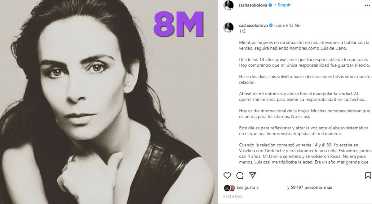 CIUDAD DE MÉXICO.- El pasado 8 de marzo, en el marco del Día Internacional de la Mujer, Sasha Sokol se armó de valor para denunciar públicamente de abuso a Luis de Llano, quien entabló una relación con la cantante cuando ella tenía 14 años y él 39.