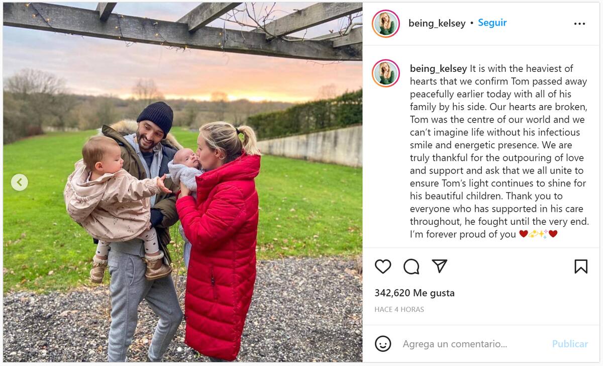 ‘’Nuestros corazones están rotos, Tom era el centro del mundo y no podemos imaginar la vida sin su sonrisa contagiosa y se presencia enérgica’’
