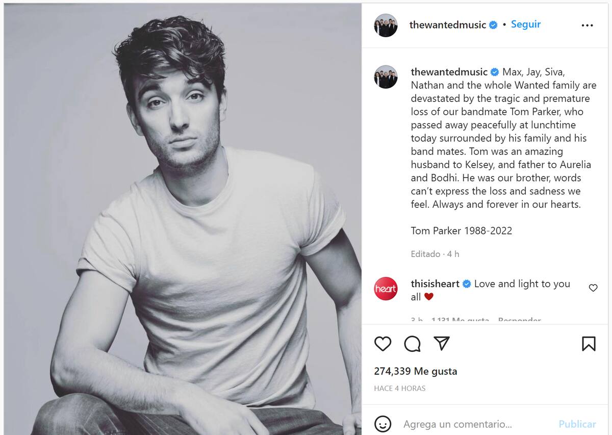 El cantante Tom Parker de The Wanted fallece a los 33 años