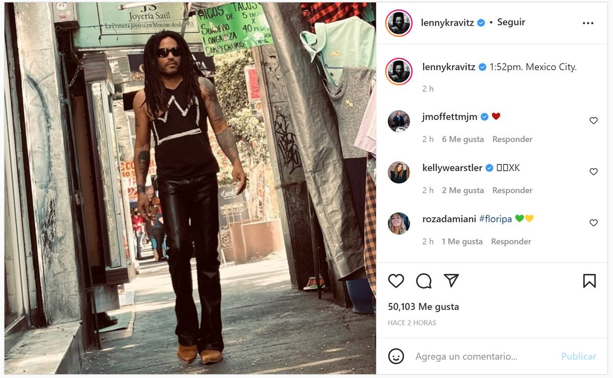 Ciudad de México.- El músico Lenny Kravitz ha mostrado disfrutar su estadía en la Ciudad de México, y esto a que se le ha podido ver al artista paseando por la ciudad.