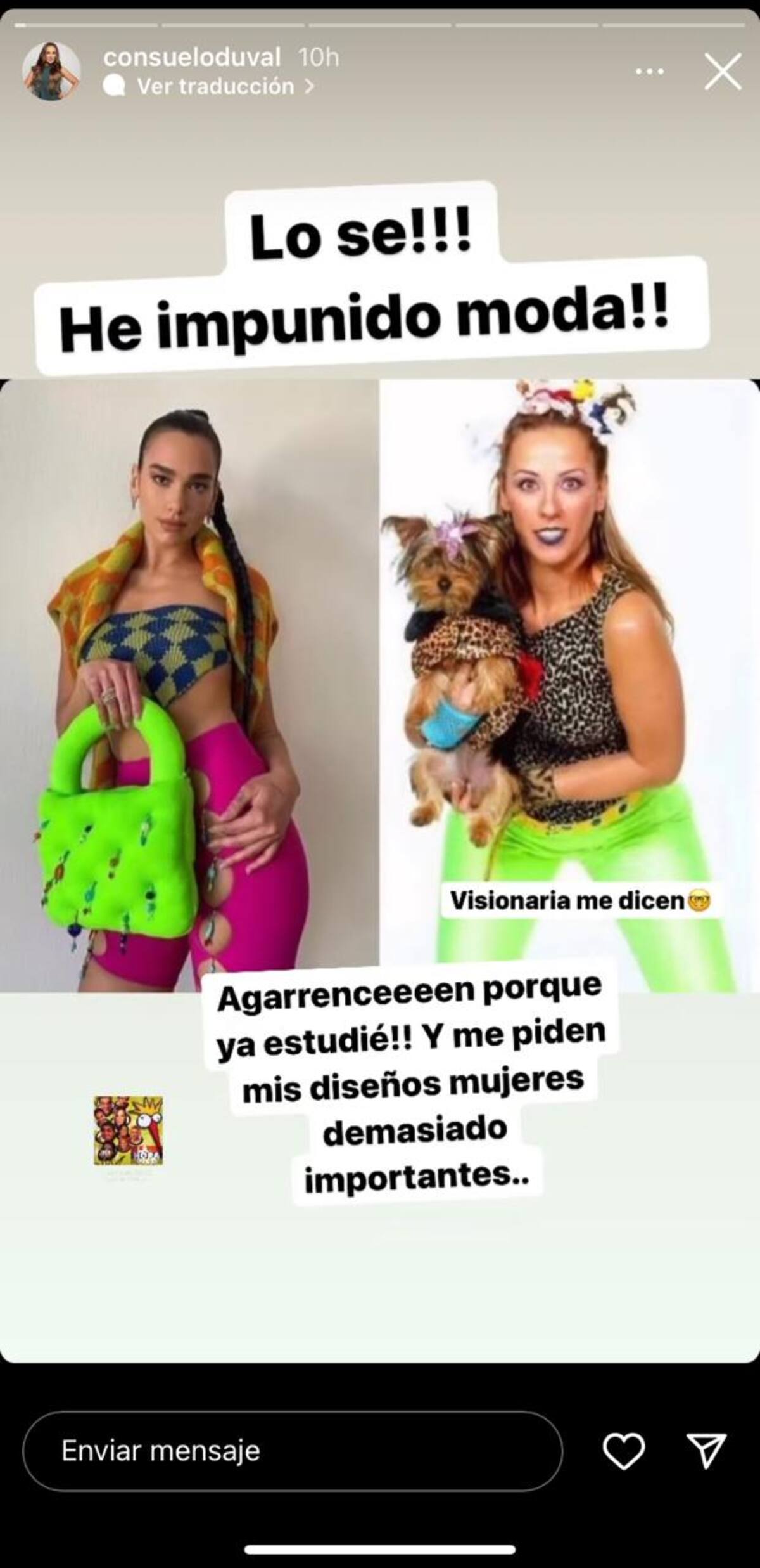 Consuelo Duval reconoció que ha “impuesto” moda sobre la famosa artista, debido a que en la fotografía Dua Lipa aparecía con un vestuario muy parecido y con los mismo colores que utiliza “Nacaranda”.