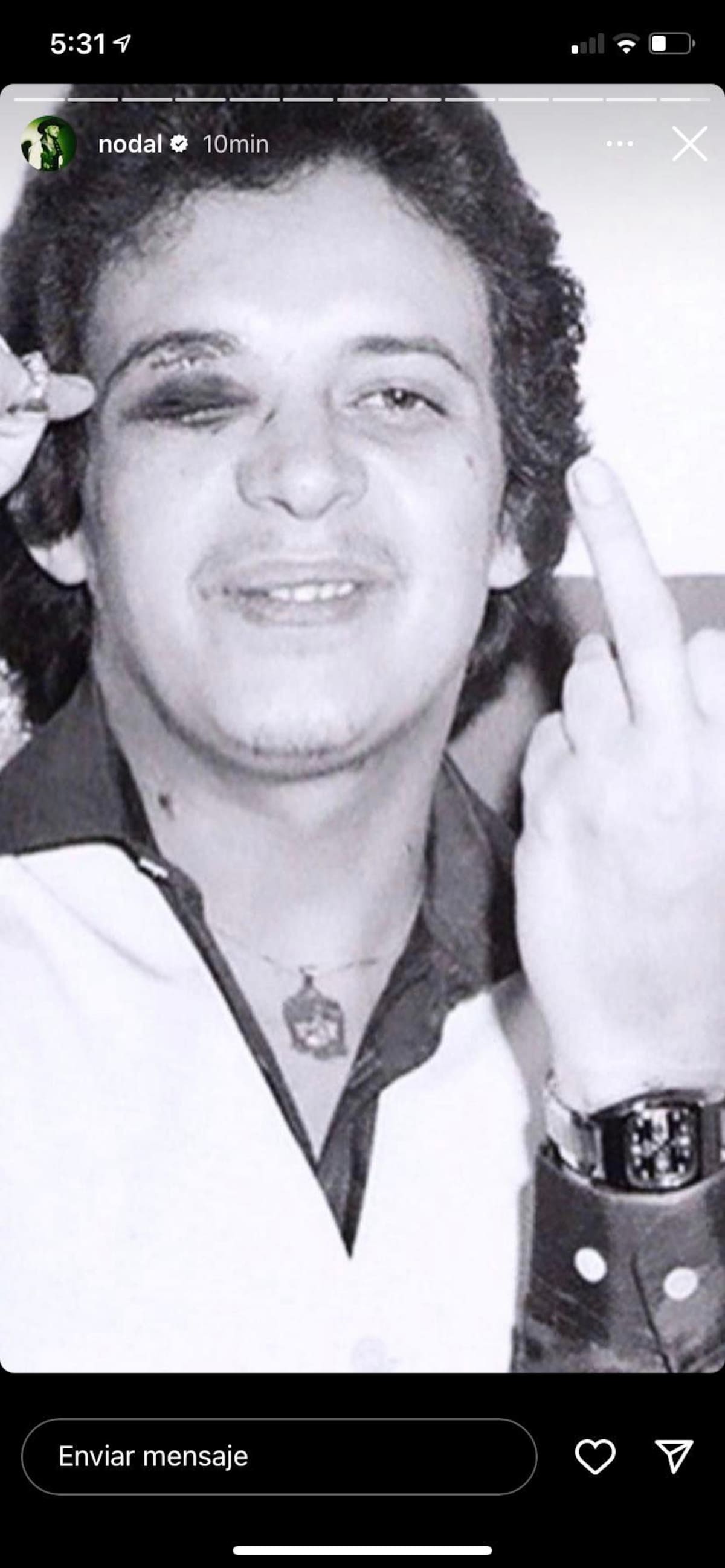 Nodal prometió 'la tiradera' saldría a las 12:00 horas de Hermosillo, tras casi 6 horas de silencio publicó una historia en instagram de Héctor Lavoe golpeado de un ojo.