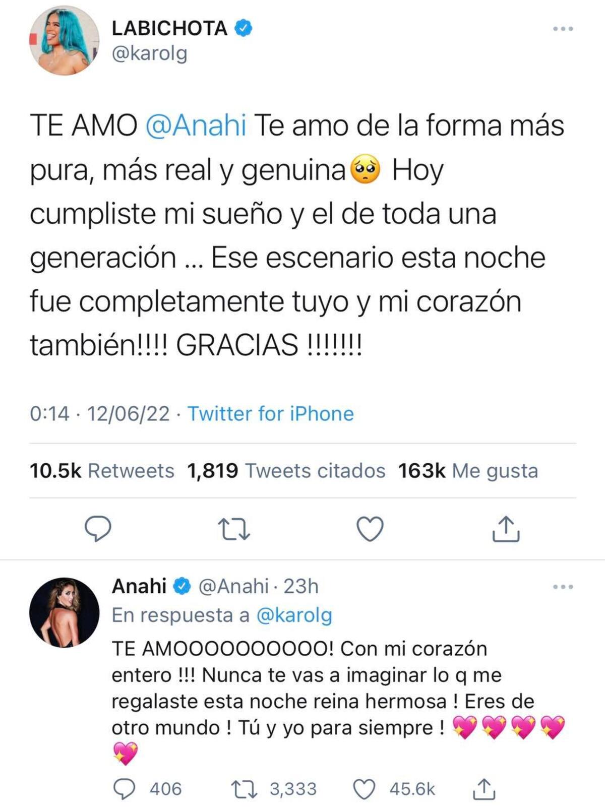 ¿Por qué Karol G le dijo "te amo" a Anahí en Twitter?