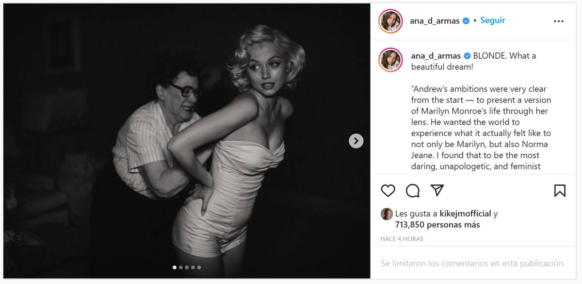 Después de las primeras imágenes de Ana como Monroe, la actriz se dijo feliz y afortunada por la oportunidad y utilizó su cuenta de Instagram para publicar algunas imagenes y el trailer de la cinta.