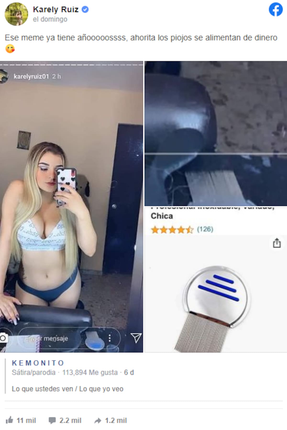 “¿Qué pasó Karely? ¿Cómo que tienes piojos?”, “Muy cuki la Karely, pero me salió con piojos”, “¿Si es ella?”, son algunos de los comentarios que se pueden leer en las redes sociales.