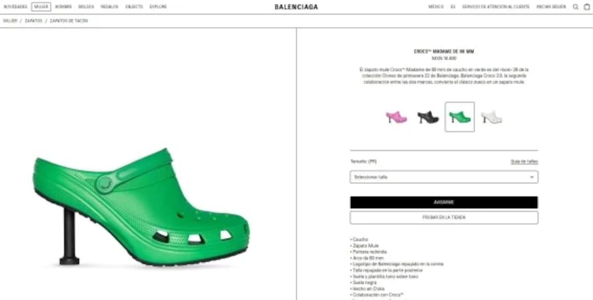 Los irreverentes Crocs de tacón son el modelo "Madame" y pertenece a la colección primavera 2022 de la firma. "Balenciaga Crocs 2.0, la segunda colaboración entre las dos marcas, convierte el clásico zueco en un zapato mule (destalonado)", describen en la web del producto.