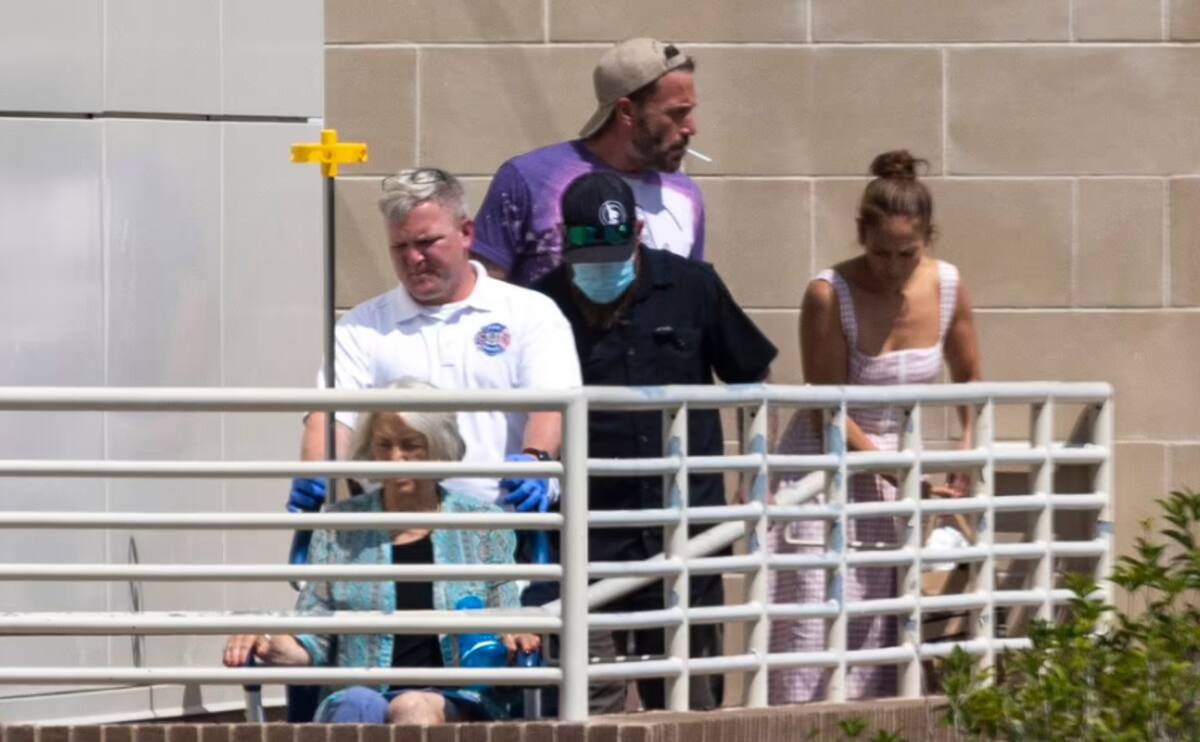 Otras fotografías muestran a la madre de Ben Affleck, Christopher Anne Boldt, mientras se marcha del hospital en una silla de ruedas.