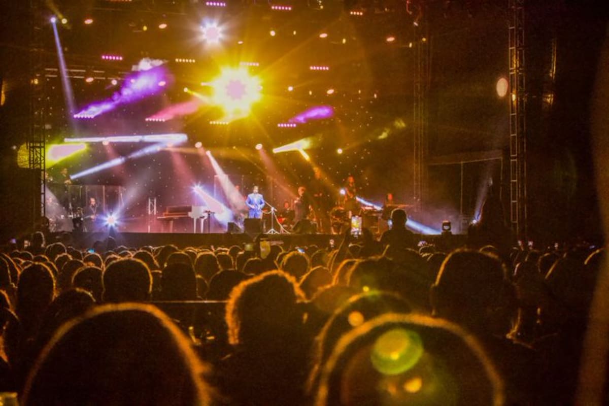 Con su característico traje azul cielo, el “Rey de la música latina”, salió al escenario a las 21:20 horas para interpretar “Emociones”, recibiendo inmediatamente los aplausos de un público en su mayoría adulto.