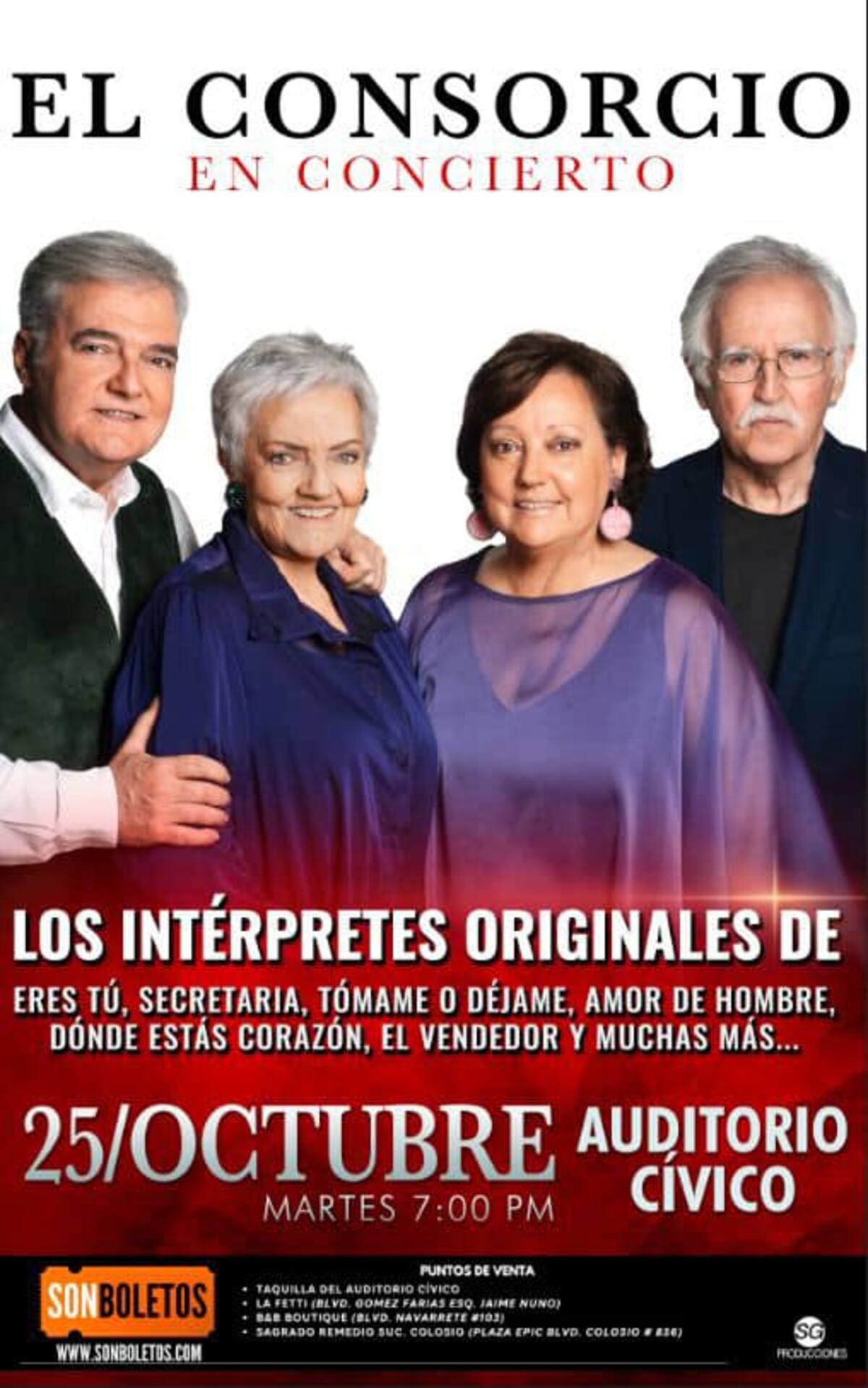Las voces que dieron vida a Mocedades volverán a Hermosillo, pues El Consorcio ofrecerá un concierto el próximo 25 de octubre a las 19:00 horas en el Auditorio Cívico del Estado.