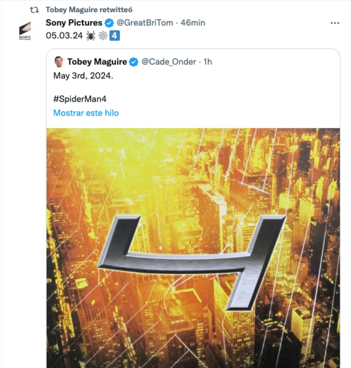Sin embargo, el encanto terminó cuando se reveló que, en realidad, el anuncio lo hizo una cuenta verificada con el nombre de Tobey Maguire, pero con otro nombre de usuario. Asimismo, el retuit de la compañía cinematográfica se hizo, efectivamente, desde una cuenta verificada con nombre Sony Pictures, pero que correspondía a un nombre de usuario diferente.