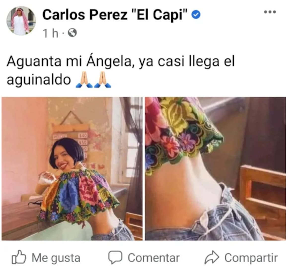 “Aguanta mi Ángela, ya casi llega el aguinaldo”, escribió el Capi.