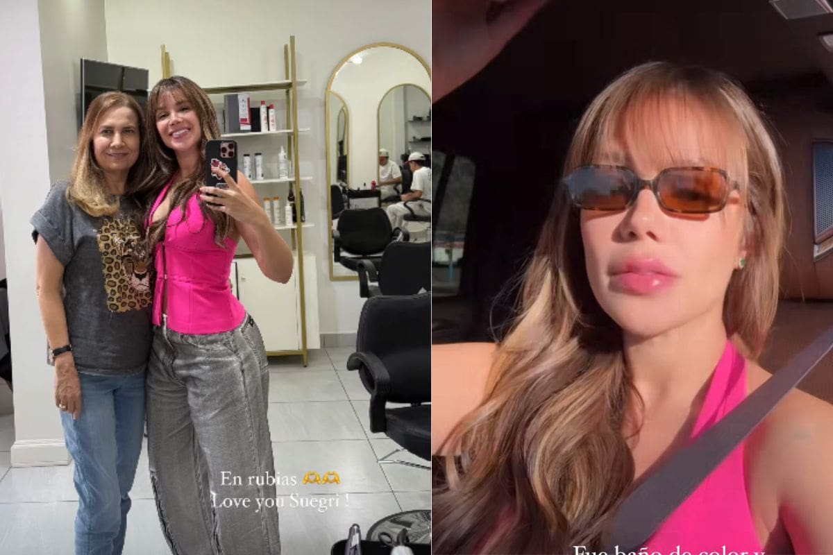 En una serie de historias publicadas en su cuenta de Instagram, Meylin Zúñiga mostró el antes y después de su cambio de look. Primero, compartió una imagen divertida junto a su suegra, ambas con un filtro de cabello rizado y gafas rojas, mientras esperaban su turno en el salón de belleza.
