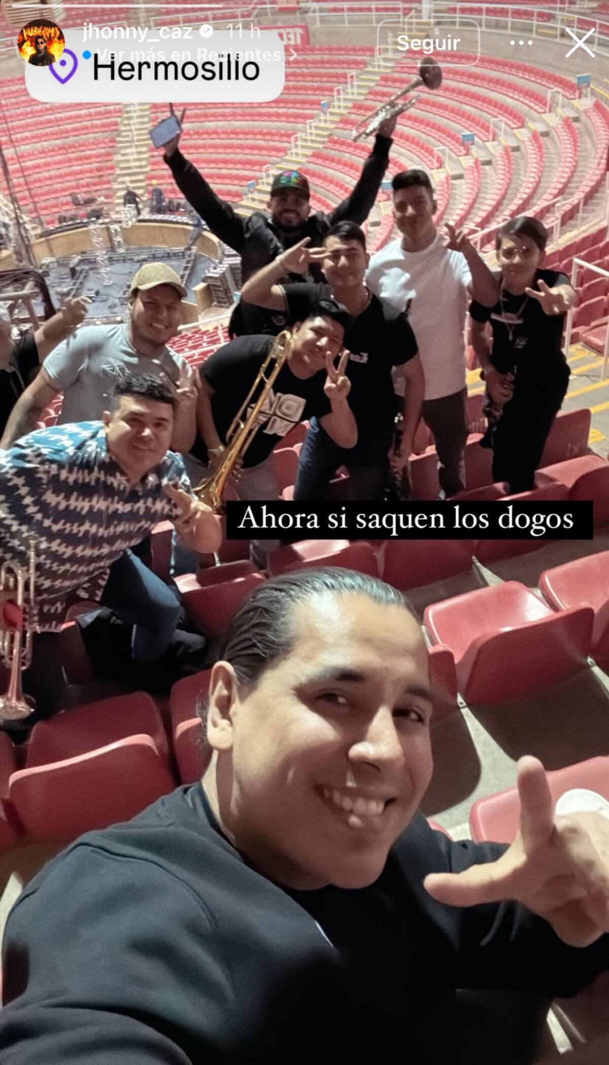 Grupo Firme llegó a Hermosillo esta semana, y lo hizo evidente Johnny Caz, hermano de Eduin, al compartir una historia desde el interior del palenque con el mensaje “Ahora sí saquen los dogos”, en referencia a los famosos hot dogs hermosillenses.