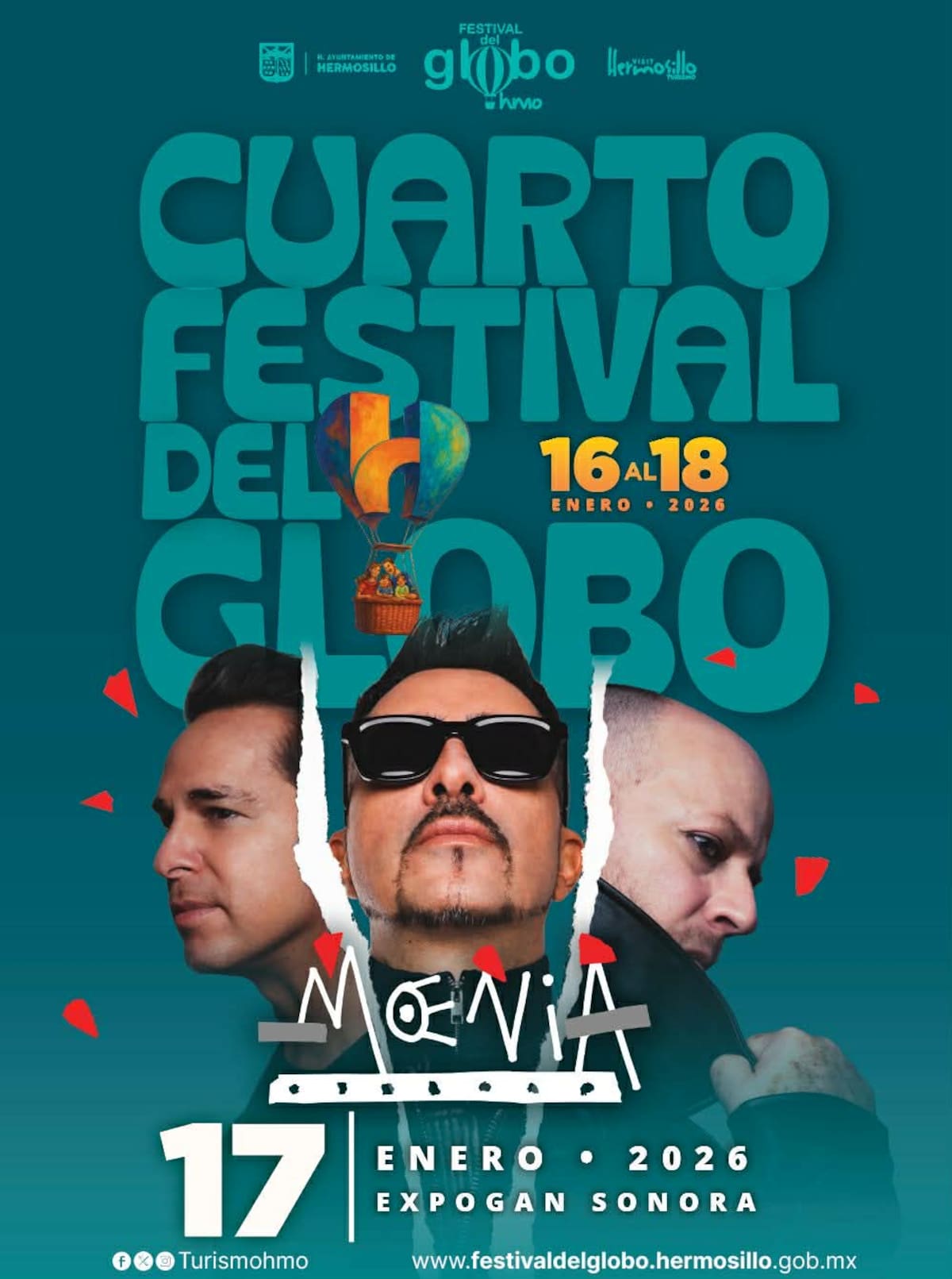 El Cuarto Festival del Globo en Hermosillo se reprograma para enero 2026 e incluirá un concierto gratuito de Moenia, además de vuelos y actividades para toda la familia.