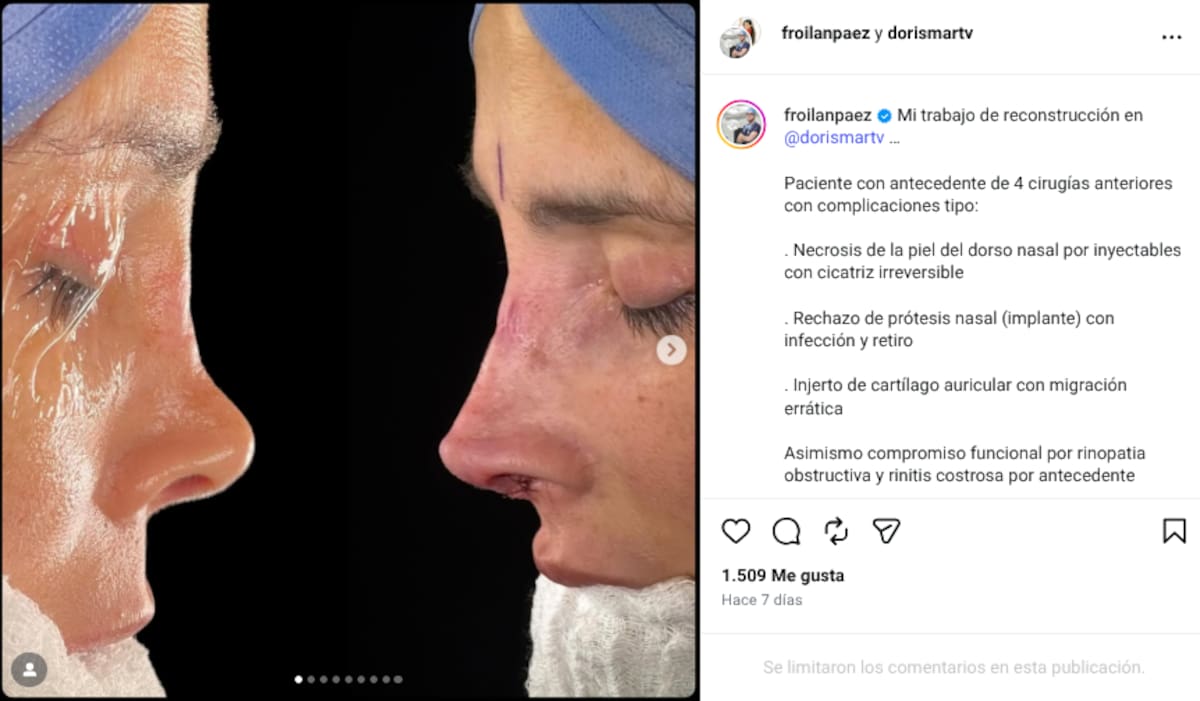 El proceso de cirugías de Dorismar comenzó en 2023, cuando se sometió a una rinoplastia con el objetivo de corregir una ligera asimetría en su tabique nasal. Sin embargo, la intervención no tuvo los resultados esperados y desencadenó diversos problemas médicos y estéticos que afectaron tanto su salud como su apariencia.