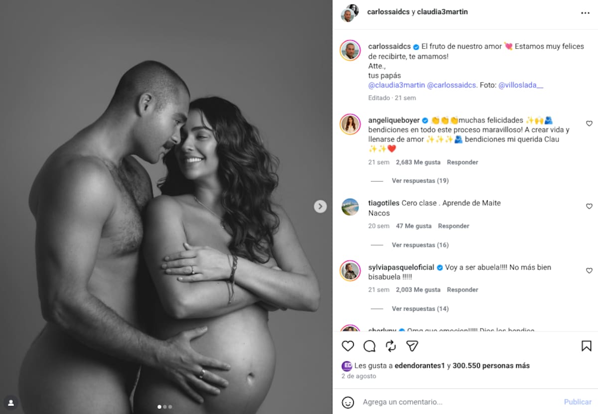 La noticia del embarazo de Claudia Martín y Carlos Said no estuvo exenta de comentarios y polémica desde el comienzo. Fue el 2 de agosto de 2025 cuando compartieron la noticia oficial de que estaban esperando a su primer hijo, con una serie de fotografías sensuales y atrevidas en Instagram donde se veía claramente el vientre de la actriz.