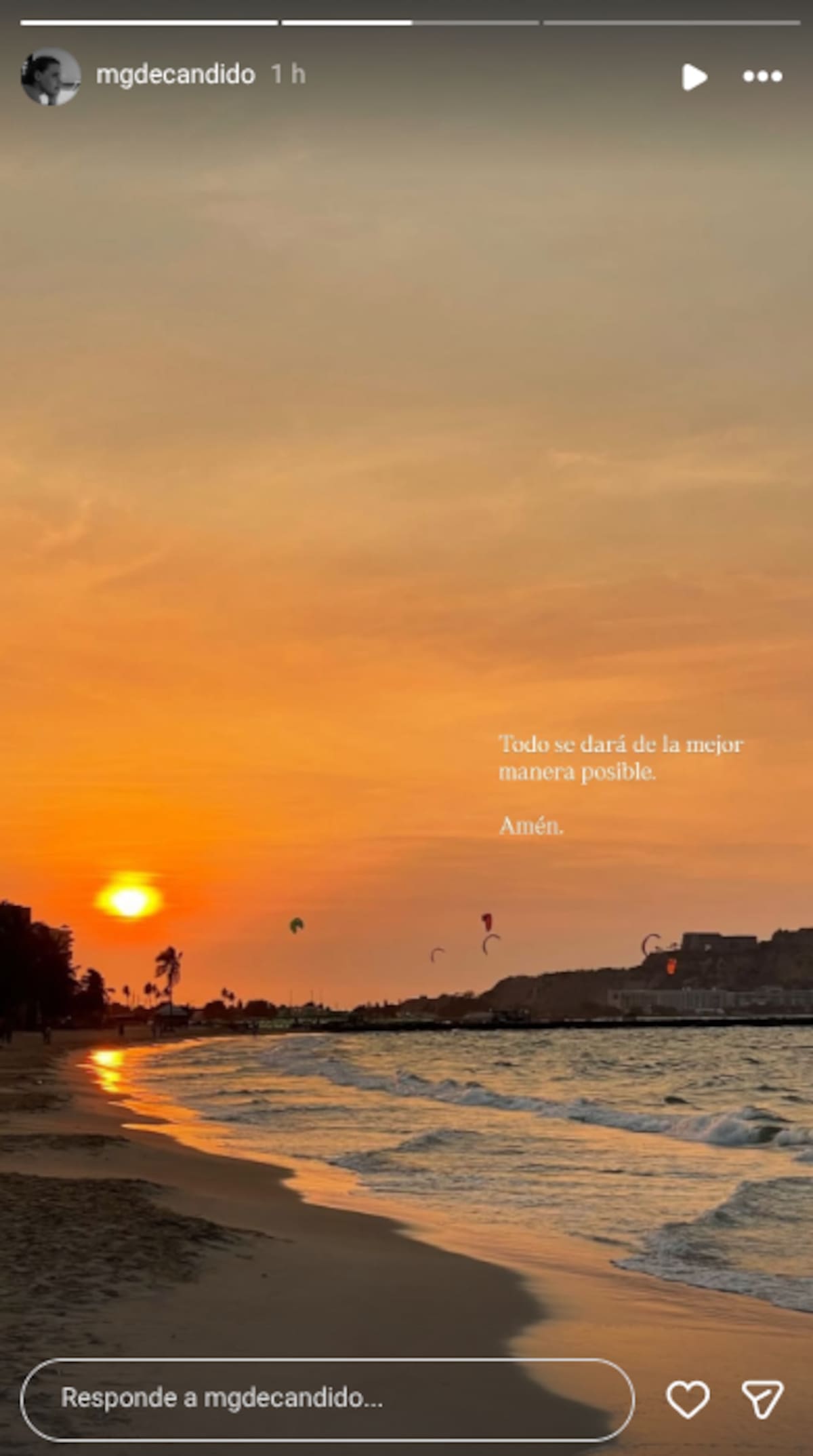 De Candido acompañó este mensaje con una imagen del amanecer, un gesto que muchos interpretaron como un intento de transmitir calma a quienes le expresaron apoyo y preocupación.